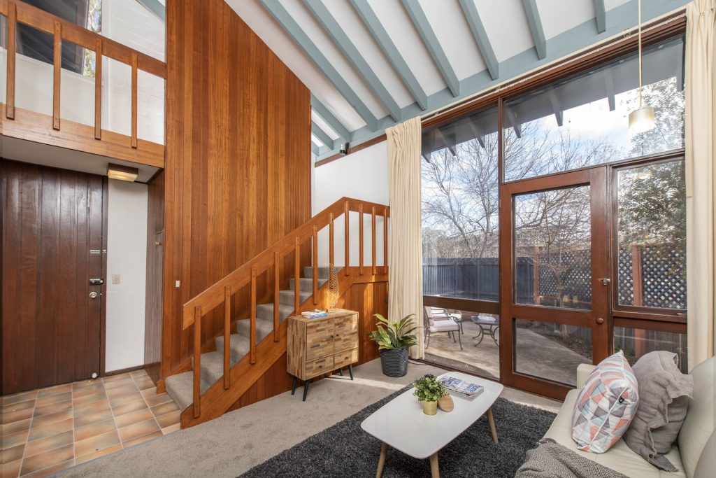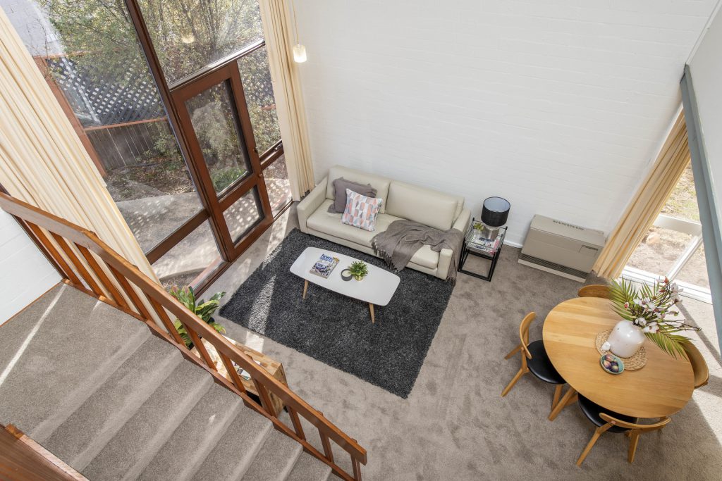 Good sized townhouse on large parcel of landGood sized kitchen with gas cook top High raked ceilings and large windows to capture the lightOpen plan living and meals areaTwo good sized bedrooms upstairs with built-in robes Renovated bathroomElectric hot water systemPrivate enclosed front courtyard Easy to maintain fully enclosed rear yardSemi-enclosed carport with auto garage door and storage areaBack garden access from carportShort stroll to public transportEasy walk to Farrer shops providing convenience store and cafesDirect express town centre bus from nearby Athllon DriveSouthlands Shopping Centre and Mawson Club is a short drive or walkSelf-managed body corporate of only two townhouses