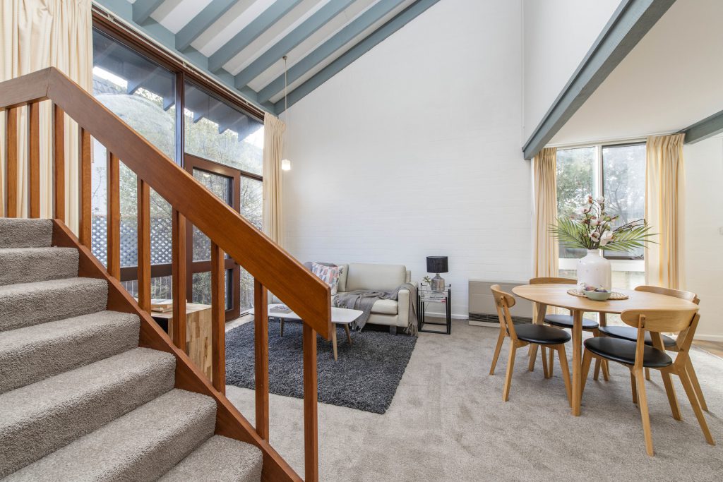 Great opportunity to get into the Farrer market with this terrific two bedroom split level townhouse with a large rear garden and a lounge room bathed in winter sunshine & warmth. The living area connects well with the kitchen with raked ceilings and large windows to capture the light. The kitchen is well designed with plenty of storage and bench space, gas cooktop and an electric oven. The bedrooms each with built-in robes and are separated by a renovated bathroom. The interior of the property has been freshly painted, and new carpet laid to the lounge. A semi-enclosed carport with auto garage door, gives you easy access to the back garden. The carport also includes a secure storage area. The location is ideal, within walking distance of Farrer shops and express bus services on nearby Athllon Drive. There is a good choice of transport routes for travel to Civic and Woden. Southlands shopping centre is a short drive away. Seize this opportunity to live in or invest in this premier suburb. Features include: