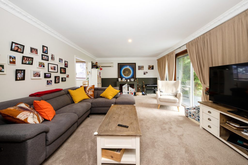 – Spacious open plan lounge and dining area with slow combustion fire and access to the front balcony