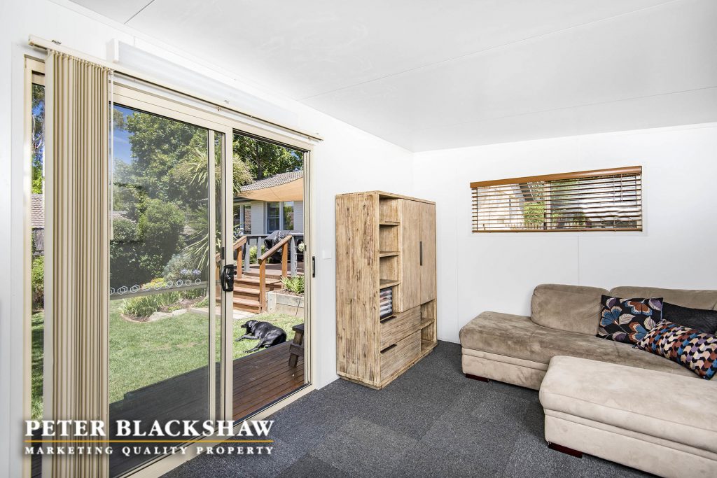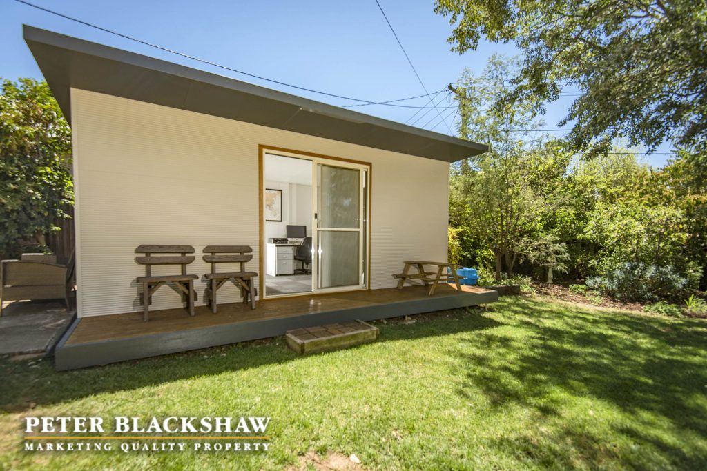 Set in a private tree lined street, in a sought after pocket of Curtin is this beautifully presented and extended home. With charming street appeal, this immaculate home offers versatile open plan living area that flows to the modern kitchen with an abundance of natural light.The lounge area extends through sliding glass doors to a fantastic outdoor deck that overlooks the rear garden which is ideal for entertaining. Accommodation is provided by three bedrooms two with built in robes. The separate studio / fourth bedroom has an ensuite, which makes an ideal for home office, teenage retreat or hobby room. This home not only offers character and warmth but is nestled in private well landscaped gardens adding extra charm and appeal. The outdoors are sure to be enjoyed with the rear deck and a secure backyard ideal for those with young kids and pets.