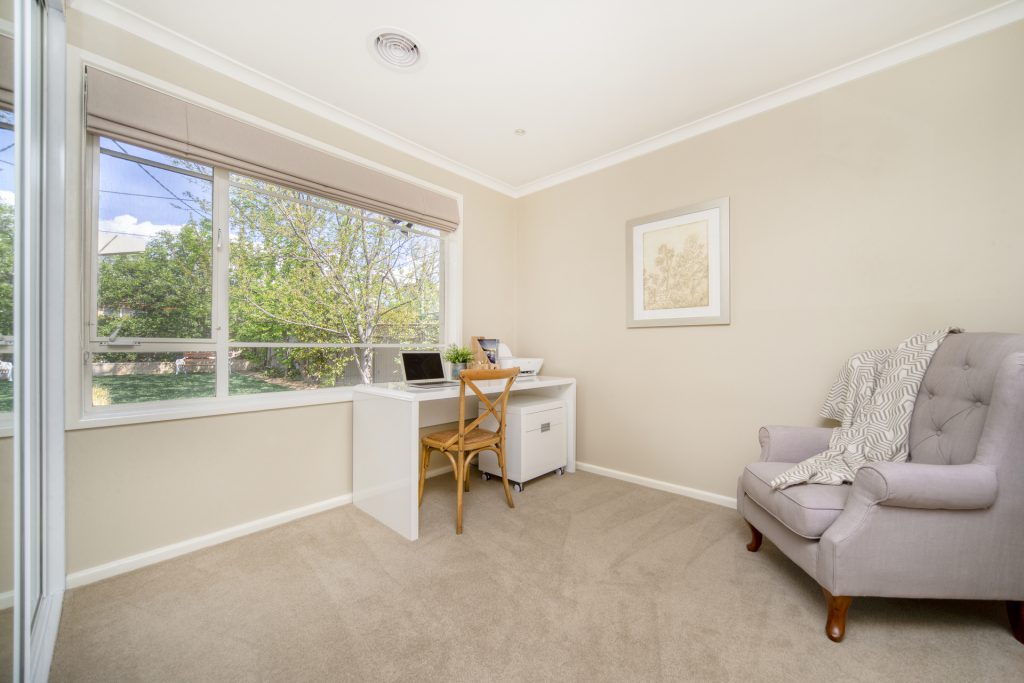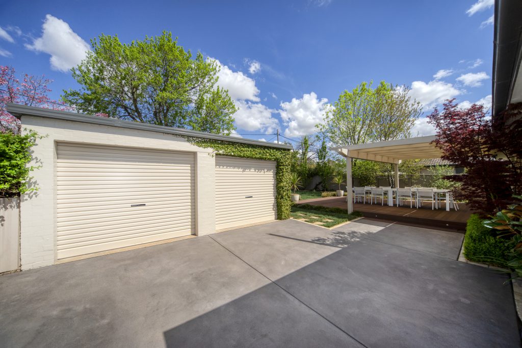 Easy care landscaped gardens surround the home with an automated watering system. Stroll to local shops and schools. Close to parkland and a short drive to Woden and Canberra city centres. A unique offering.