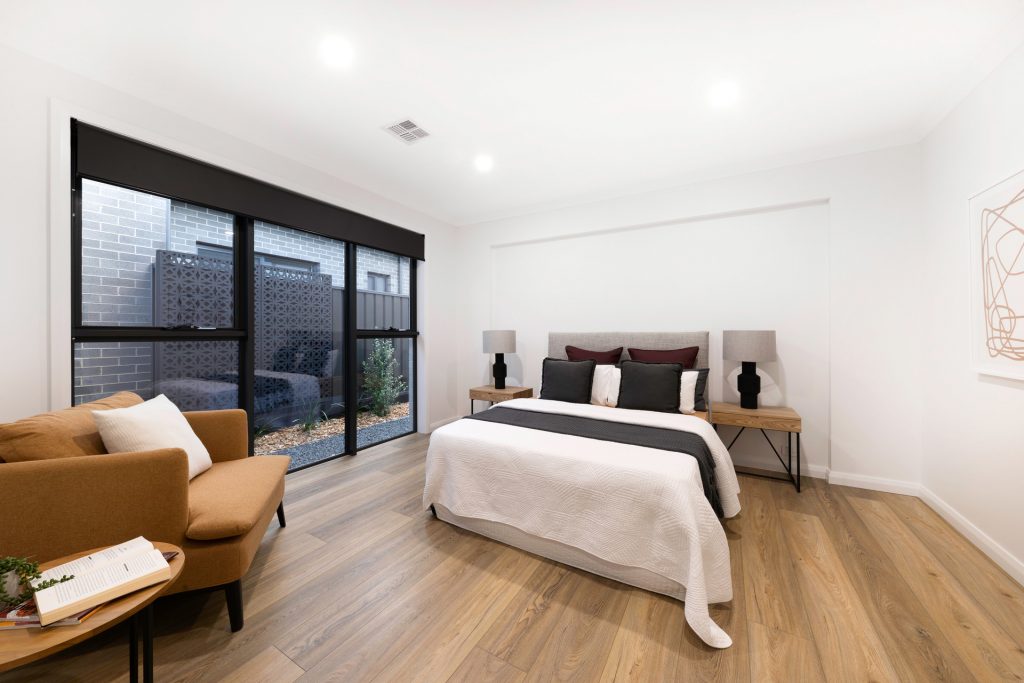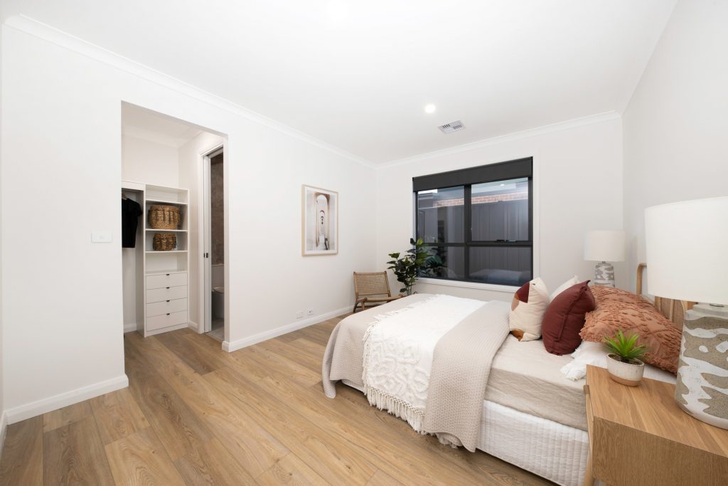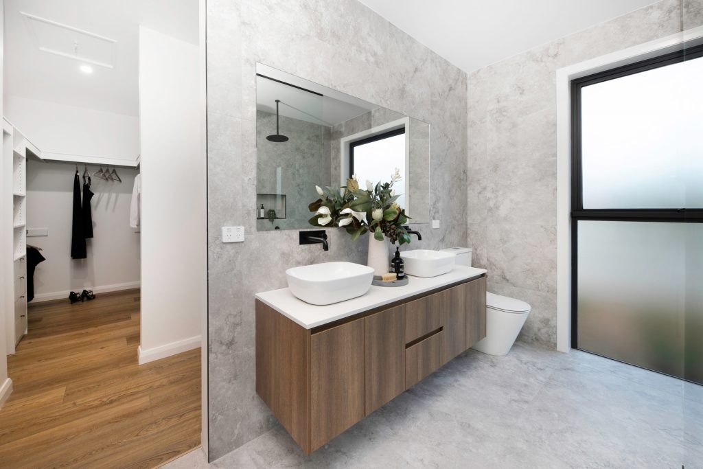– Master bedroom with large walk-in wardrobe and designer ensuite, stone benchtops