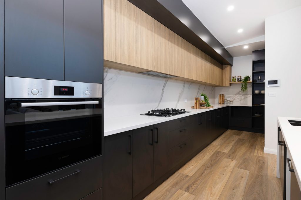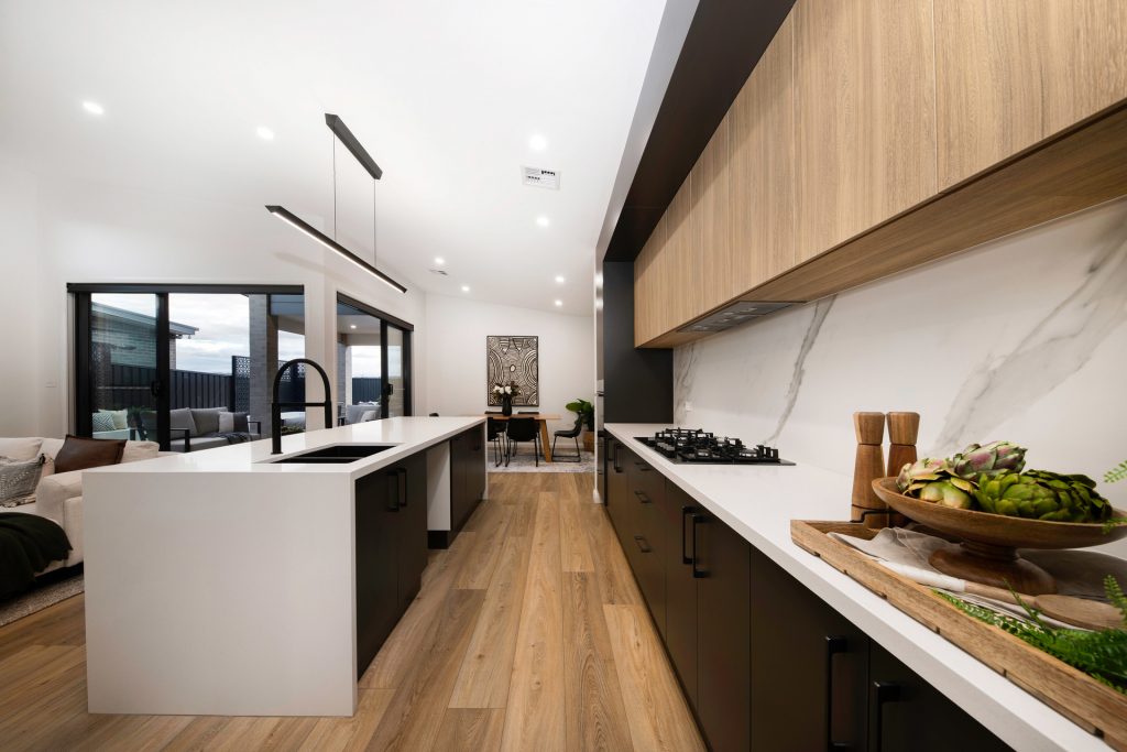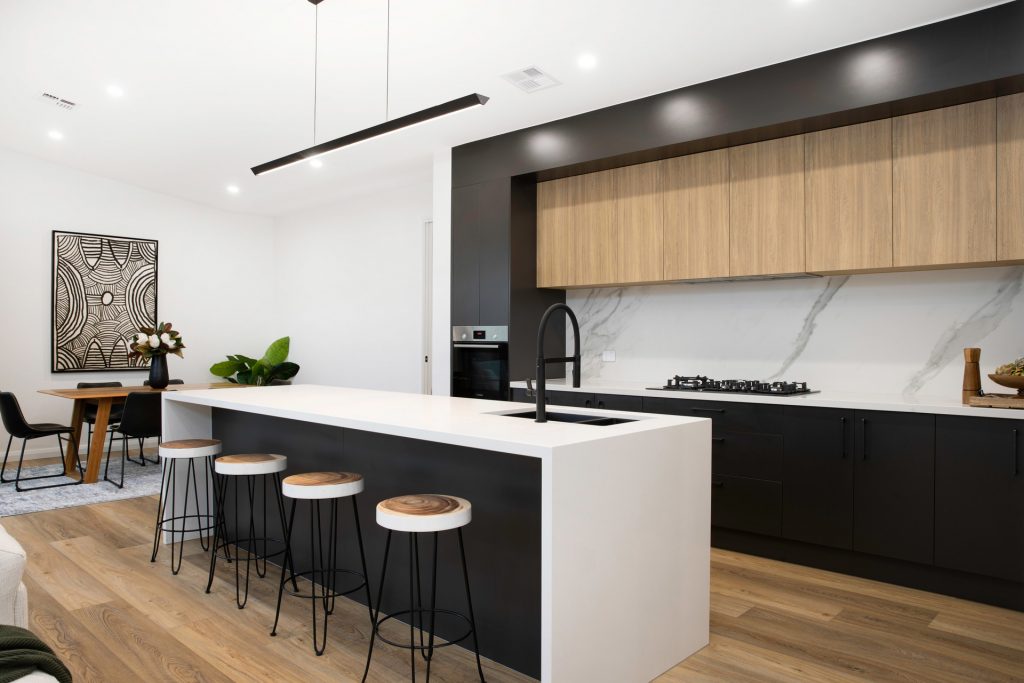 – Kitchen with stone island bench and quality European appliances and soft-closing cabinetry
