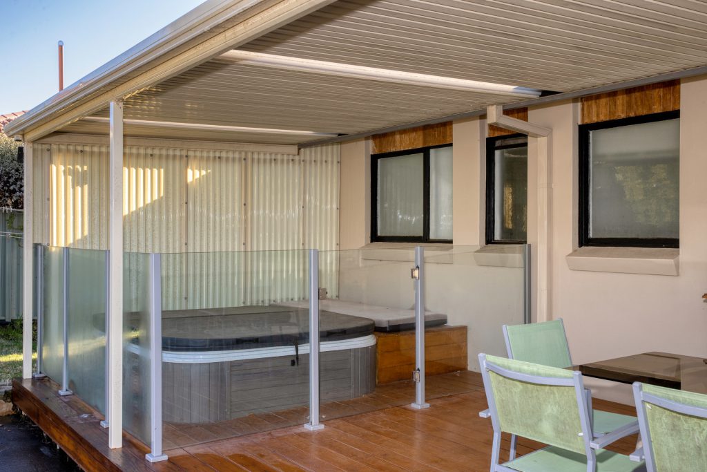 Inbuilt spa with glass fencing