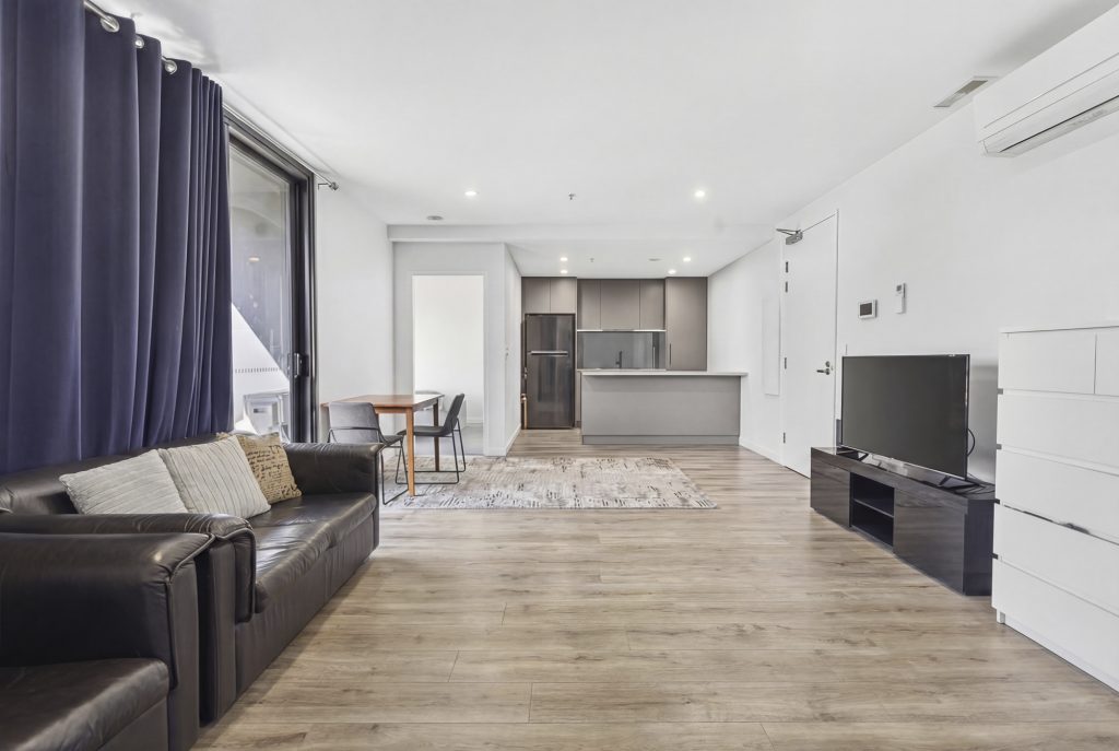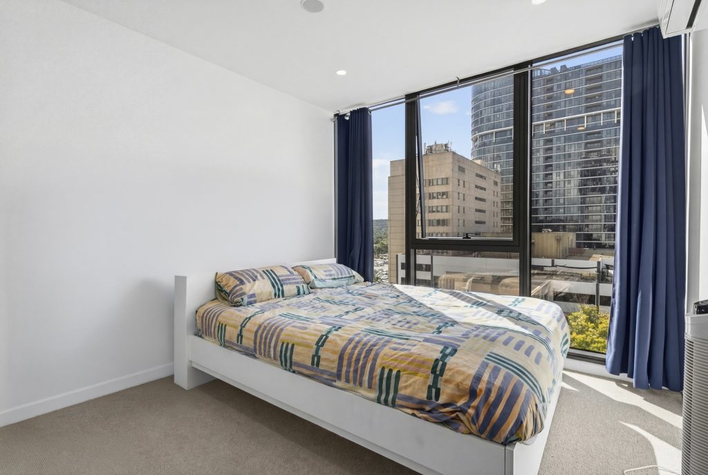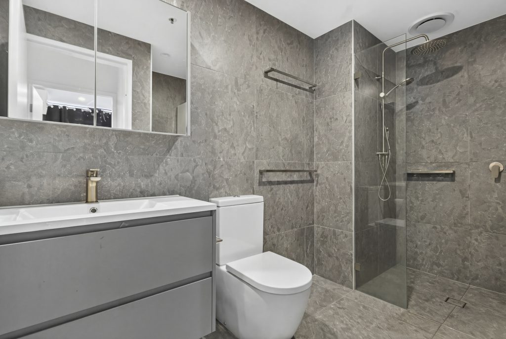 Accommodation is provided by two well-proportioned bedrooms, both fitted with built-in robes. Thoughtfully designed, the bedrooms are positioned on opposite sides of the apartment, offering excellent separation and added privacy. Servicing the apartment is a modern bathroom, complete with full-height tiling, a floating vanity, and a large shower with quality fixtures. A European-style laundry is also included for added convenience.