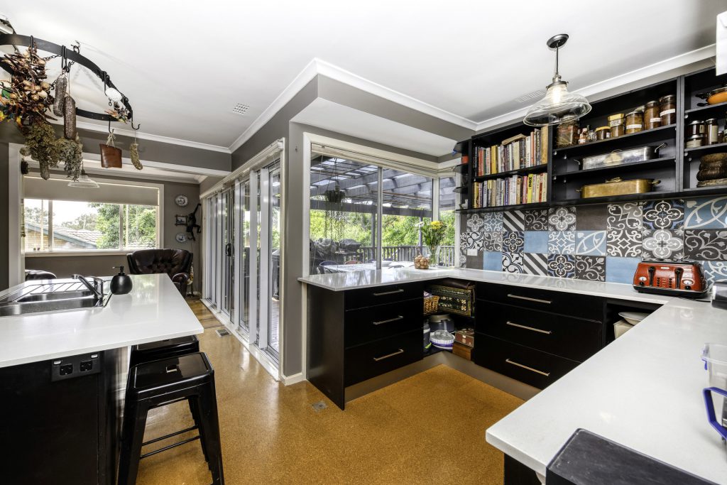 Well situated in an elevated position in one of Curtin’s most sought after tree lined streets. This sundrenched family home features polished hardwood floors large North facing windows and a beautiful leafy outlook throughout the spacious lounge and dining areas. The modern open plan kitchen with adjacent prep / serving area connects seamlessly with the covered outdoor deck which is ideal for alfresco dining all year round.