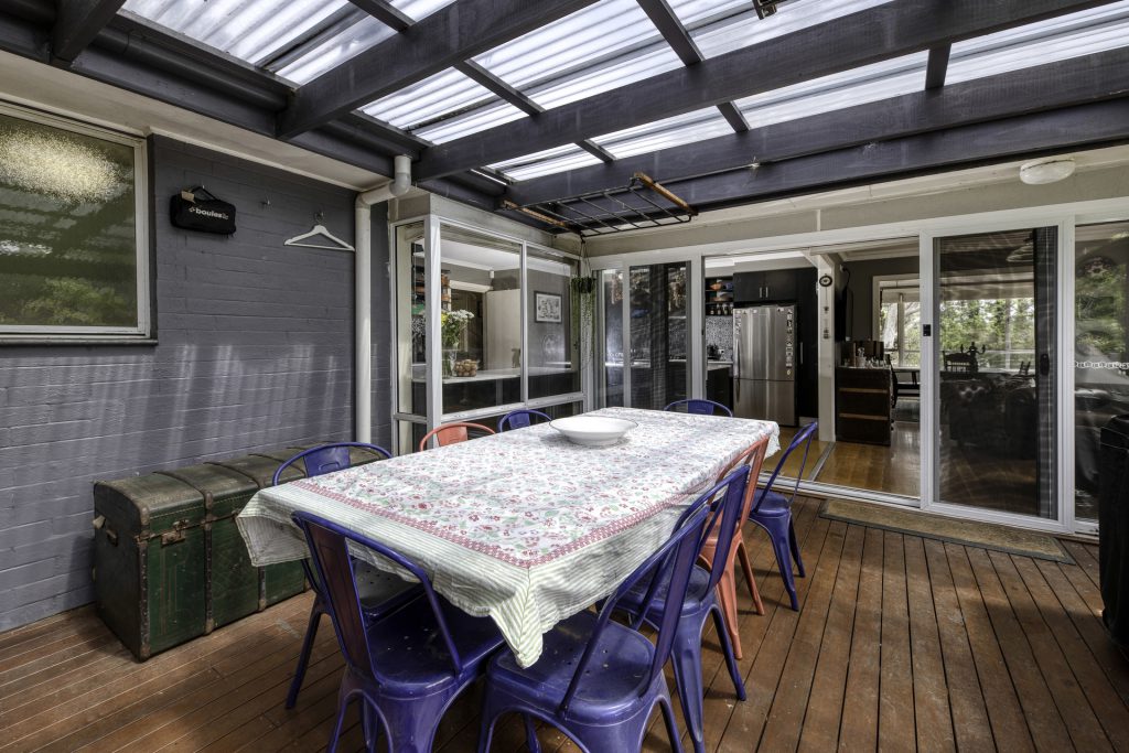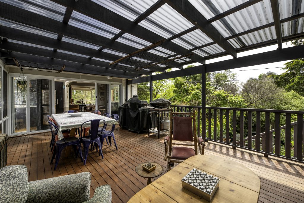 Elevated outdoor deck, covered for all year round comfort
