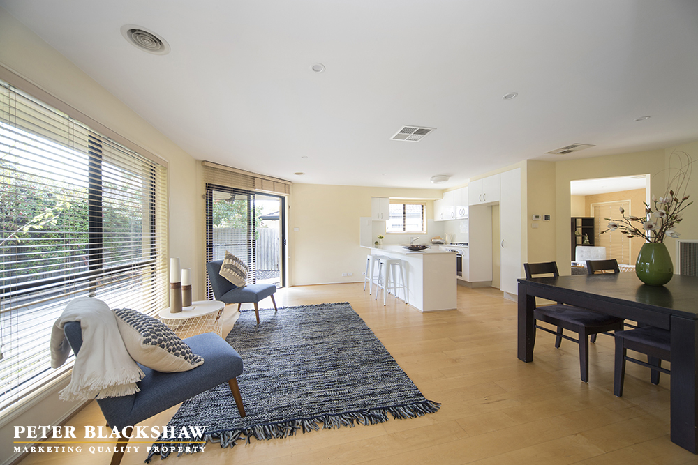 If you are looking to rightsize, look no further than this exceptional and spacious dual occupancy. Well located in the central and popular suburb of Curtin, the stylish architect-designed single level home is a rare offering to the market. Featuring clean lines with two separate living areas with an abundance of natural light, the functional floor plan comprises north facing open plan family /meals area which overlooks the paved outdoor entertaining area and connects beautifully with the brand new modern kitchen. Accommodation includes three generous bedrooms, with the segregated master having an ensuite and walk in robe. Easy care gardens surround the home. Other features include double garage with internal access, modern bathroom, ducted gas heating throughout and evaporative cooling for all year round comfort. Within a short stroll of Curtin shops, playing fields, walking trails, this property is handy to Woden and Civic centres and the Parliamentary triangle.