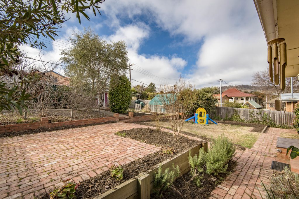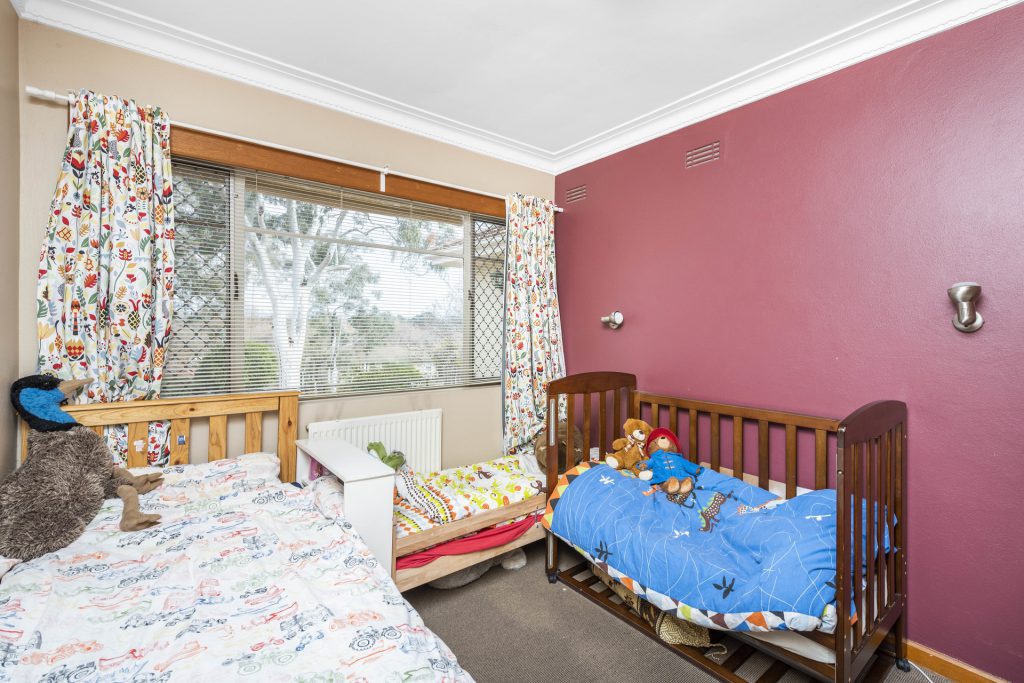 Accommodation is provided by three generous bedrooms, all with built-in wardrobes, the oversize master has a beautiful outlook to the Brindabella’s. Other features include a retro style bathroom, hydronic heating and single garage with storage.