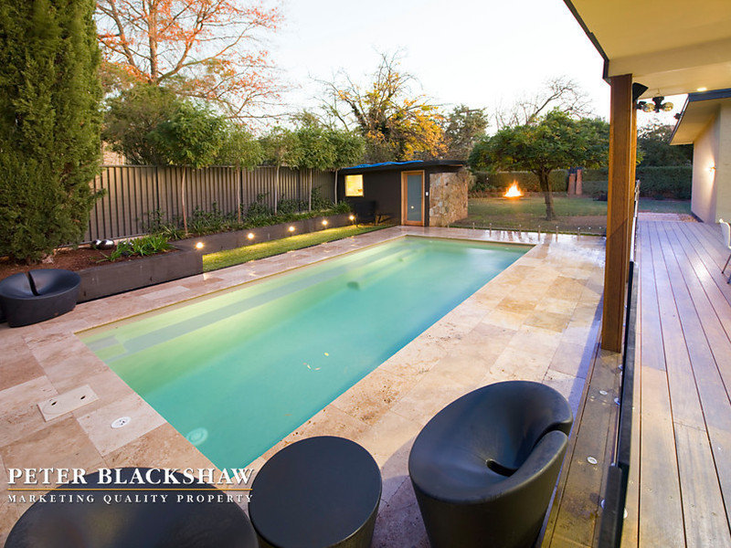 Nestled in a superb position opposite parkland in one of Hughes’ most mature tree lined streets. Set in an elevated position on a large block of 970m2 within a short stroll to local schools, shops, Canberra hospital and Federal Golf Club. This totally stunning home has been completely restyled and modernised throughout and boasts an abundance of natural light through the extensive use of full length comfort glass windows. Featuring a two storey floor plan with flexible open plan living that includes a sun drenched, formal lounge area and the modern kitchen with stone bench top that extends to a functional dining area. Internal and external living areas are linked by a large timber deck overlooking the salt water in-ground pool. Accommodation includes four bedrooms, segregated master with modern ensuite. The rumpus room “man cave” downstairs offers an extra generous living area or hobby room. The home is surrounded by easy care landscaped gardens. A rare and unique lifestyle opportunity.