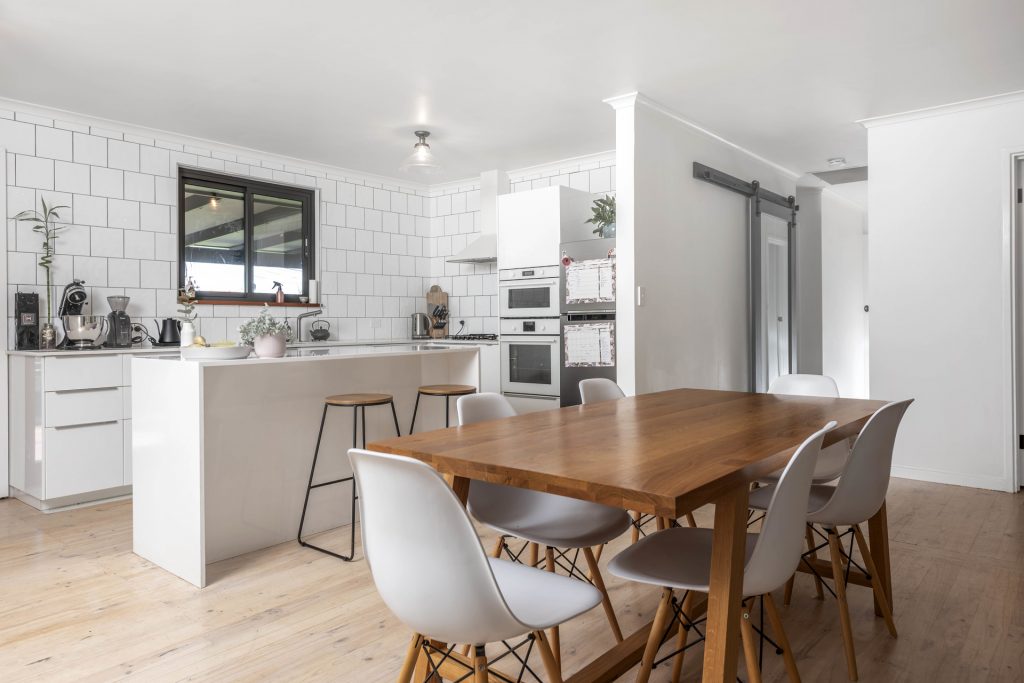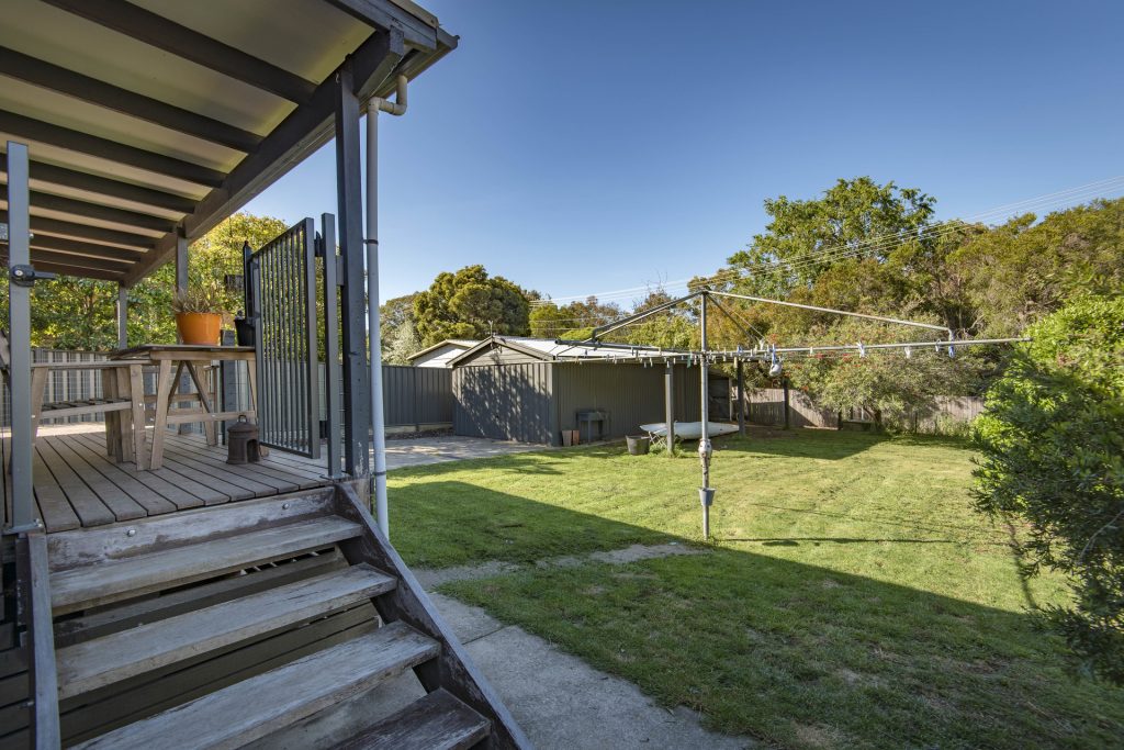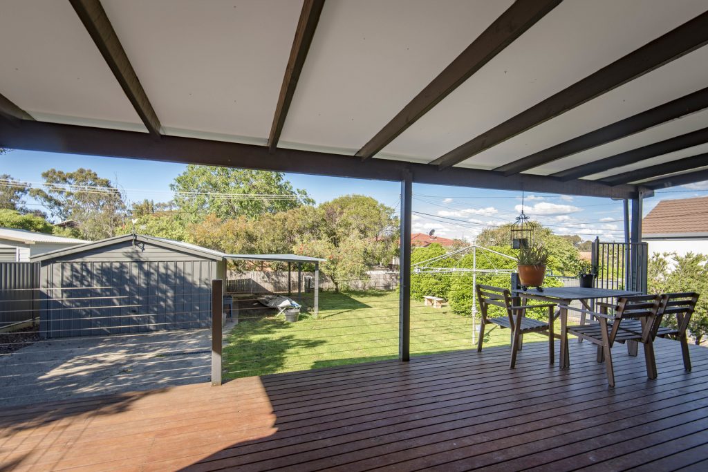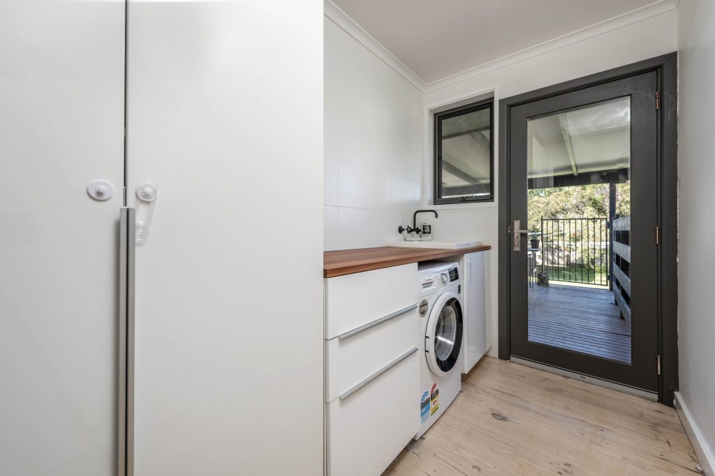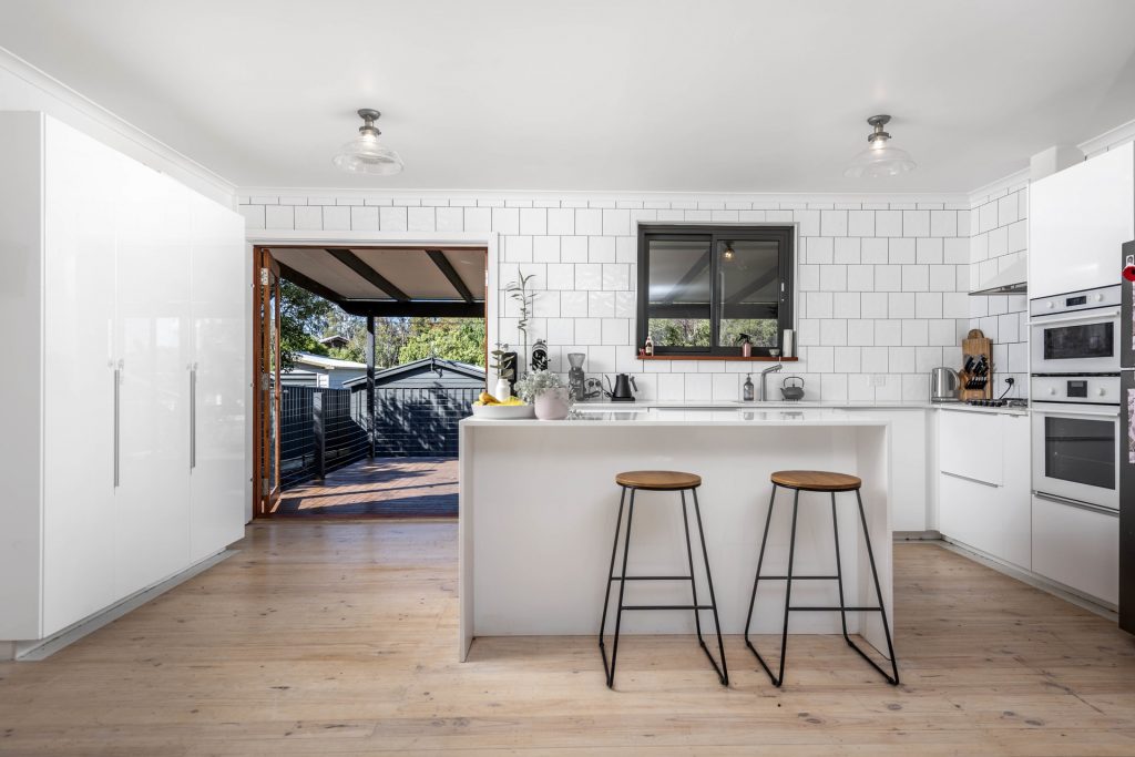 The stunning kitchen overlooks a sizeable deck where occupants can enjoy direct access to a fully fenced, established garden.