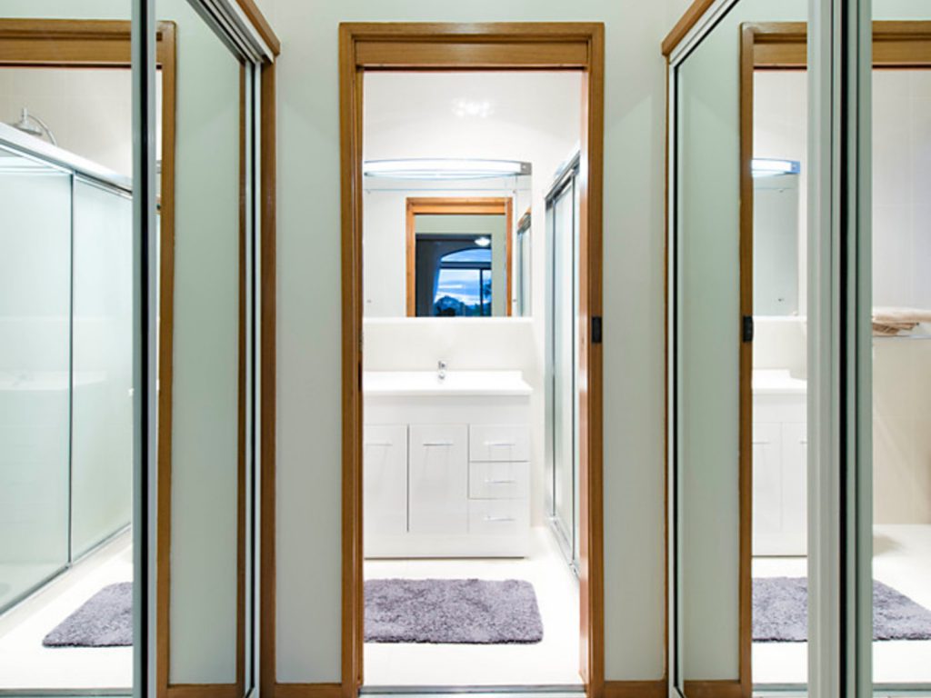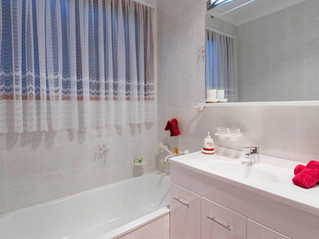 With a very large master bedroom, walk through wardrobe to a renovated ensuite, you’ll feel right at home. You also have your very own Juliette balcony to enjoy the views. The three other bedrooms on this level at the rear and side of the home all have built in robes, high ceilings and fans. Another plus to this home is the purpose built study off the meals area.