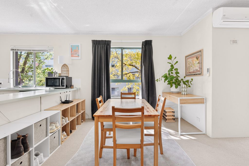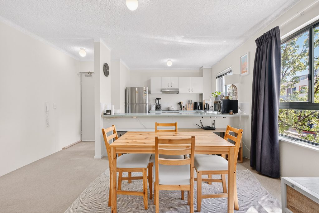 Upon entry, you are welcomed into a light-filled open-plan living and dining area, thoughtfully designed to maximise space and functionality. Large windows allow for an abundance of natural light, while the seamless connection to the balcony creates an inviting space to relax or entertain.