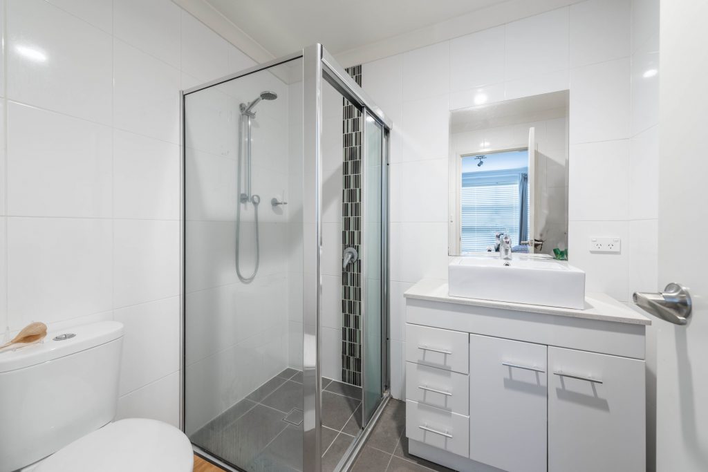 The accommodation upstairs is two bedrooms plus study/rumpus, the master with ensuite and Juliet balcony. Downstairs is a separate laundry, powder room, storage and internal access to the secure car park.