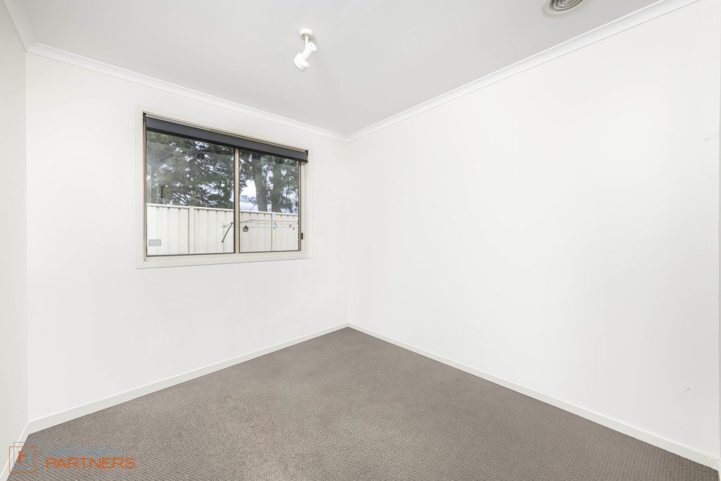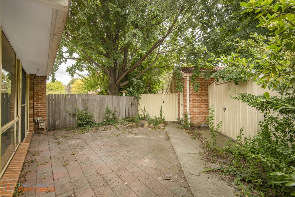 Don’t miss this one! Single level 3 bedroom townhouse with single lock up garage. Privately set to the rear of the small complex of only 9 townhouses. Bedrooms are all of a good size with BIR’S. On entering the townhouse you will be pleasantly surprised by the amount of living space on offer. Large front and rear courtyards. The home is in original condition and has potential for the new owners to add value. Just moments to Calwell shopping centre. Excellent first home or investment.