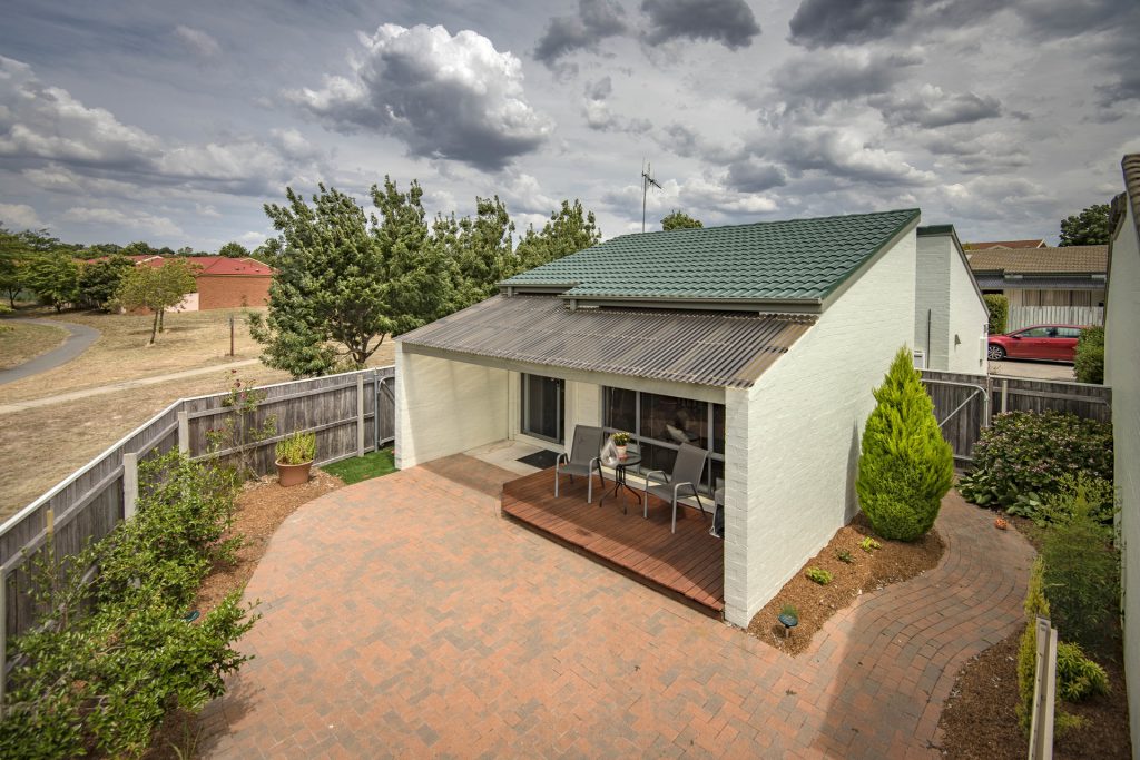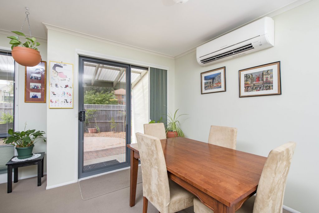 Brilliant opportunity for either the first home buyer, astute investor or those looking to downsize in style. Free-standing single-level 2 bedroom townhouse in small quiet complex in prime central location backing onto parkland reserve and adjacent children’s playground. Presented in 1st class original condition featuring open-plan living areas leading out to private pergola-sheltered rear deck which in turn overlooks the large paved courtyard. The bright kitchen which overlooks the living area includes a gas range, dishwasher and plenty of bench space and the large bathroom offers a separate shower recess, good sized tub and skylight. Year round comfort is assured with 2 split-system reverse-cycle air-conditioners located in the living area and main bedroom. Both bedrooms have built-in wardrobes and ceiling fans for extra convenience. The undoubted bonus is the detached double garage with automatic doors which is supplemented by extra off-street parking. EER 2.5