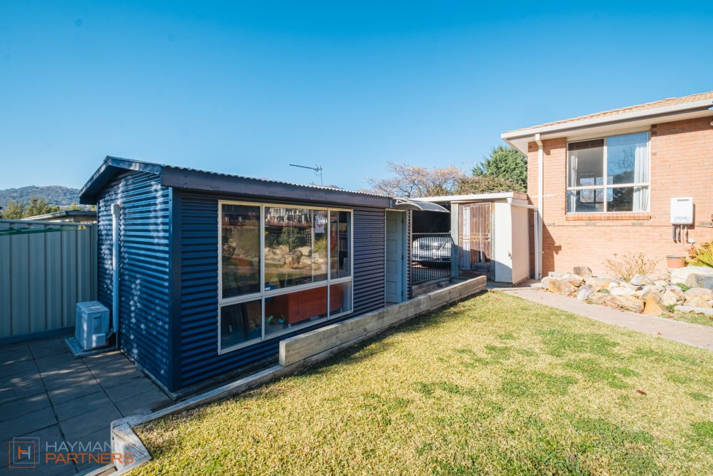 This entry level home boasts only two neighbours (no neighbour to the rear) and is located in a family friendly cul de sac. There is also a bonus purpose built secure studio with power, reverse cycle air conditioning and plenty of space for the serious home handyman to set up equipment. Also great for hobbyists or artists who require their own work space or a quiet room for a studying teenager or uni student.