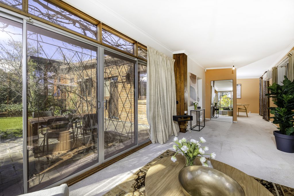 Nestled in a superb elevated position opposite reserve / parkland within this exclusive and tightly held pocket of Campbell. This stylish double brick contemporary home with a difference was designed by Australian National University Architects office in 1957. The private secure front courtyard makes an impressive entry point to the home.