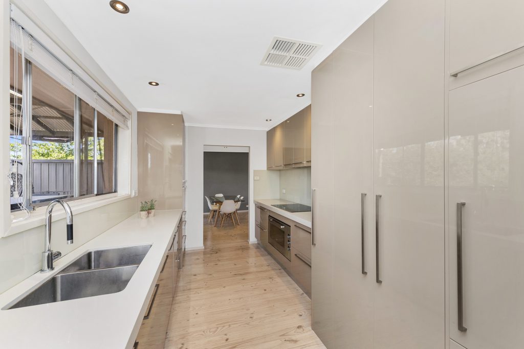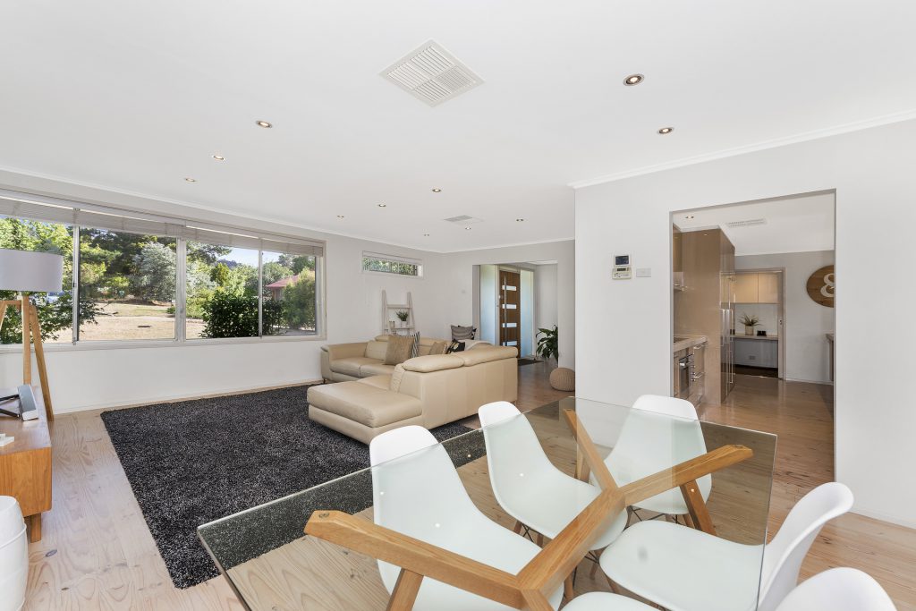 Nestled in a superb position at the end of this sought after and tightly held cul de sac is this renovated single level home. Situated on an easy care 933m2 block boasting north to the rear which provides a feeling of warmth and abundance of natural light throughout the living areas. The living areas consist of a spacious open plan lounge and dining area that connects seamlessly to both the modern kitchen and the immense covered elevated deck, that is ideal for entertaining all year round and offers an outlook to Black Mountain Tower. Accommodation includes four bedrooms plus study, with generous master with ensuite and all rooms have built in robes. Other features include ducted gas heating, ducted evaporative cooling, modern kitchen, huge external laundry and oversized single garage with auto door. Easy care gardens with computerised sprinkler and drip system surround the home. Tastefully decorated with modern fittings, fixtures and colours. Stroll to Chifley, Phillip and Woden shopping precincts. A must to inspect.