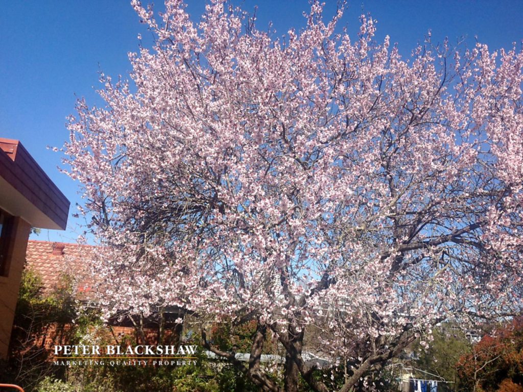The north east facing living area opens through french doors to the paved front entertaining area. The separate dining room connects well to the living area and has a servery to the large galley kitchen. The wooden kitchen has plenty of storage and looks out across the backyard with an almond blossom which, when in bloom, creates a beautiful vista from the elevated window.
