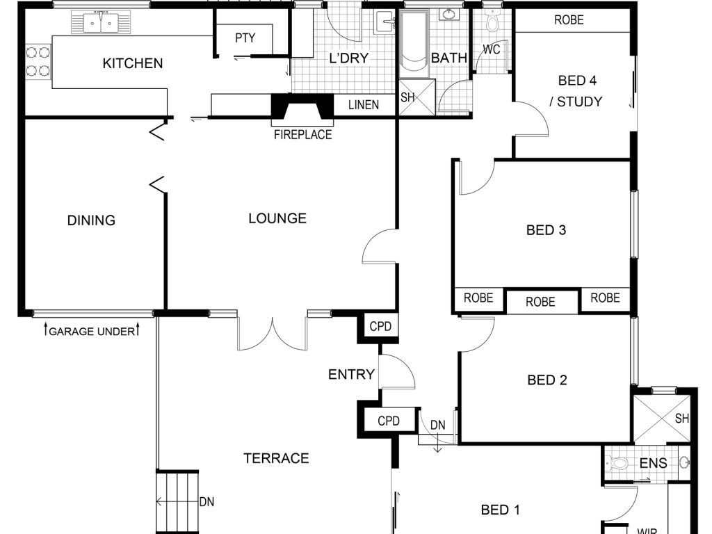 Accommodation is provided by four bedrooms with a large main bedroom offering a walk in robe and ensuite. The second bedroom has a built in desk at whilst the fourth bedroom / option study has access to the side yard and a sunny north west aspect.