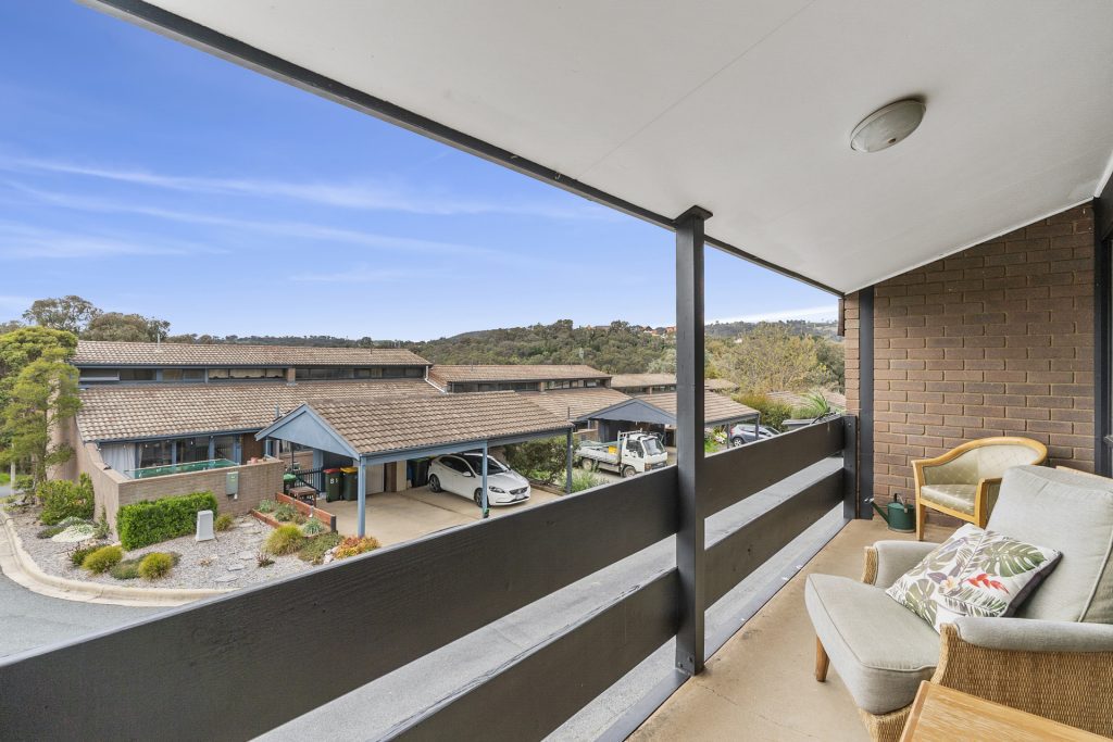 – North facing balcony off living/dining area with views to Red Hill and Mount Mugga Mugga