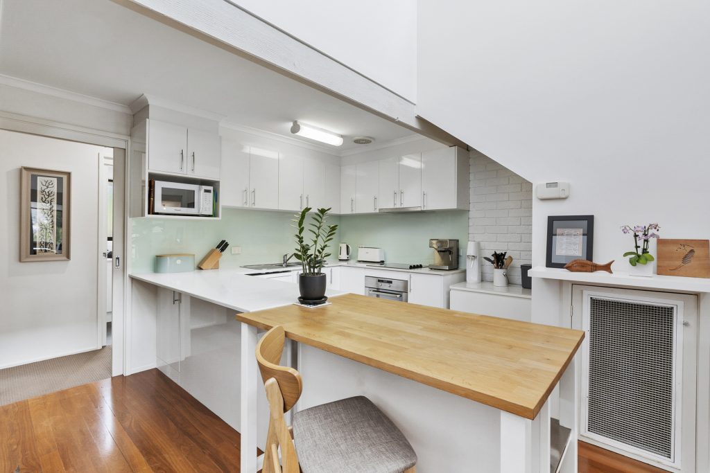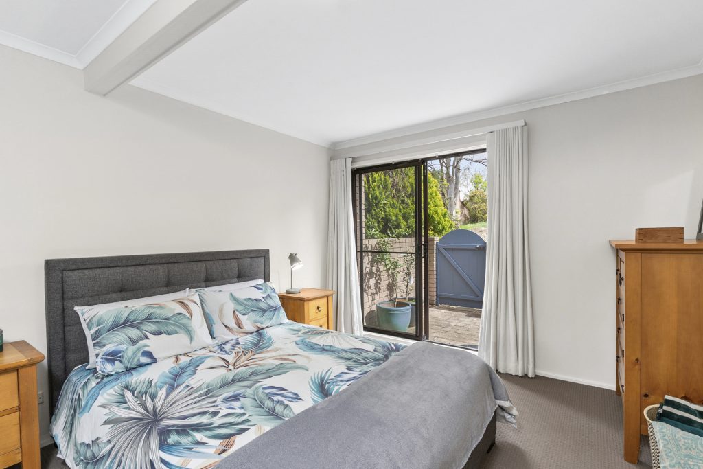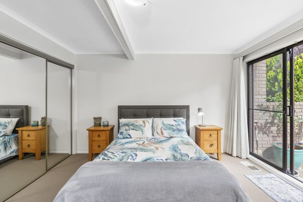– Spacious master bedroom on main level with access to rear courtyard and reserve, and adjacent renovated bathroom (serving as an ensuite)