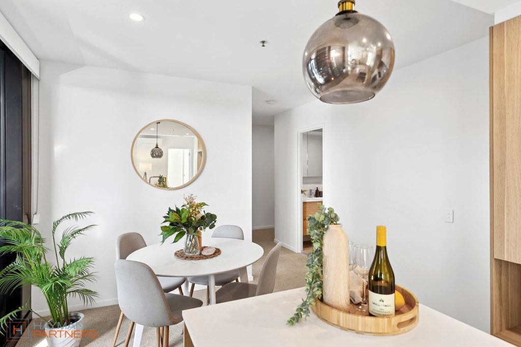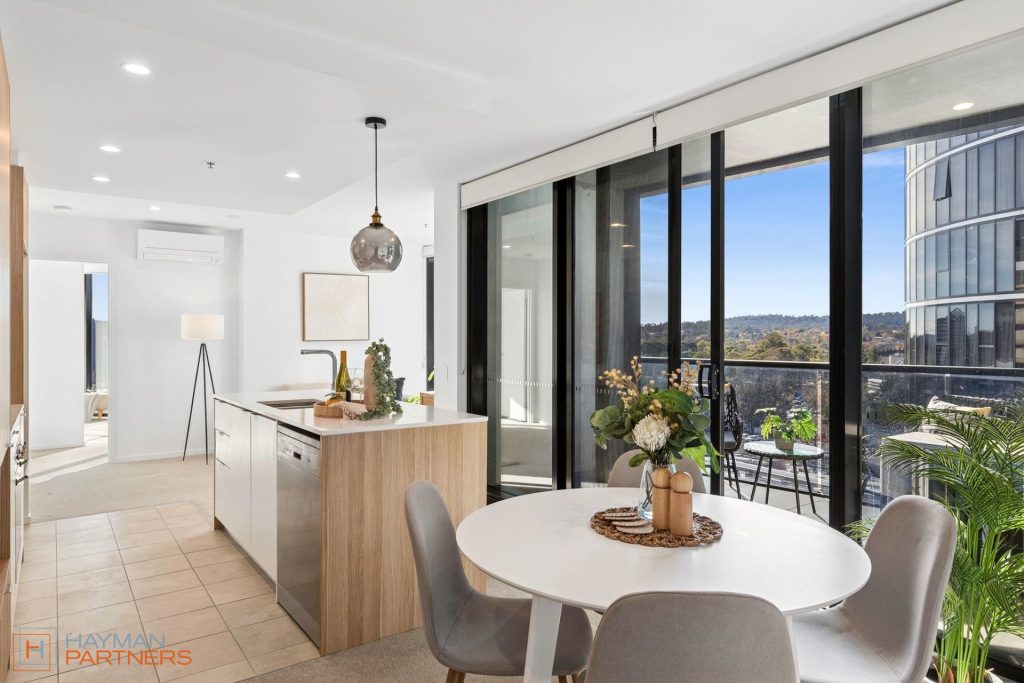 Bathed in morning light, the north-easterly facing layout welcomes the sun into your living space each day. Step into the master suite and be greeted with breathtaking, uninterrupted views of Telstra Tower. Inside, modern finishes blend with intuitive design, with separate living and dining areas, and bedrooms on each end, creating a space that’s perfect for quiet mornings, relaxed evenings, or hosting friends.