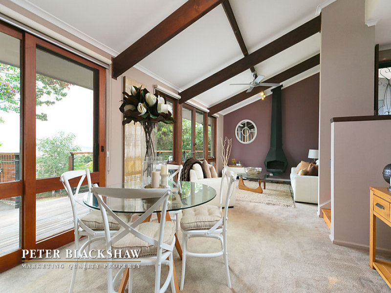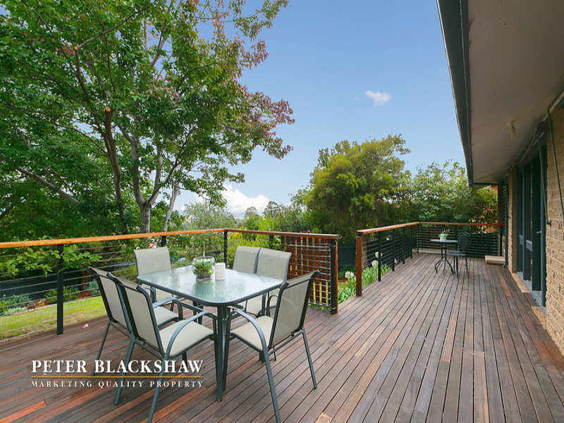 Looking out to the Brindabellas from the rear deck is one of the pleasures of living in this sun filled architecturally designed split level family home. Immaculately presented and superbly renovated throughout and offering a number of internal and external living areas to suit all seasons. The accommodation is provided by three bedrooms, master with modern ensuite. Large timber windows are a feature throughout the formal and informal living areas and offer a fantastic outlook across the Brindabella’s. A modern kitchen with stainless steel appliances and large island bench that connects seamlessly to the meals area. The sun drenched family room opens to the rear outdoor entertaining area, offering further options to relax or entertain family and friends. Mature established landscaped gardens and off street parking complete this outstanding home. Stroll to local schools, Cooleman Court, public transport and within minutes to Woden and Canberra City – a very central and sought after location.