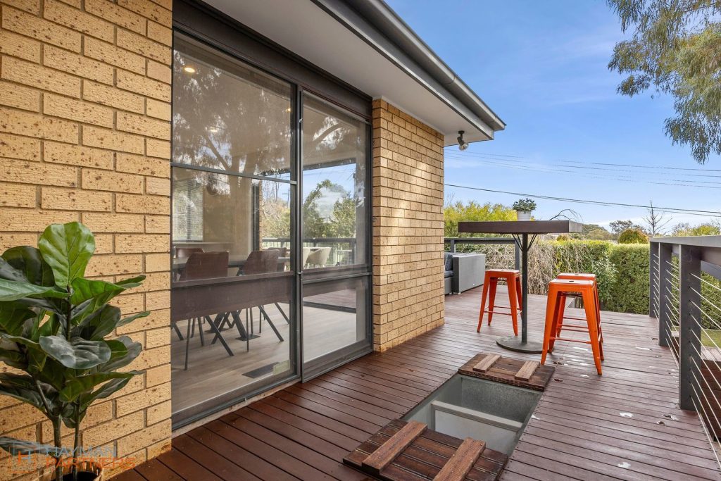 – Large wrap around external deck with built-in esky, ideal for gatherings and alfresco dining