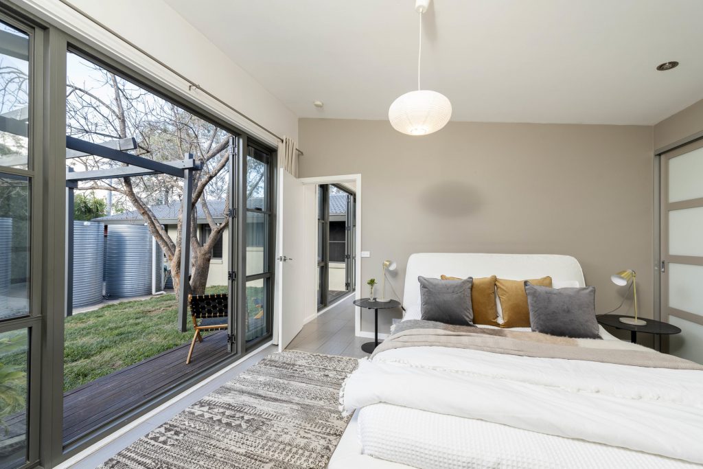 Patio doors connecting to all sides of the garden