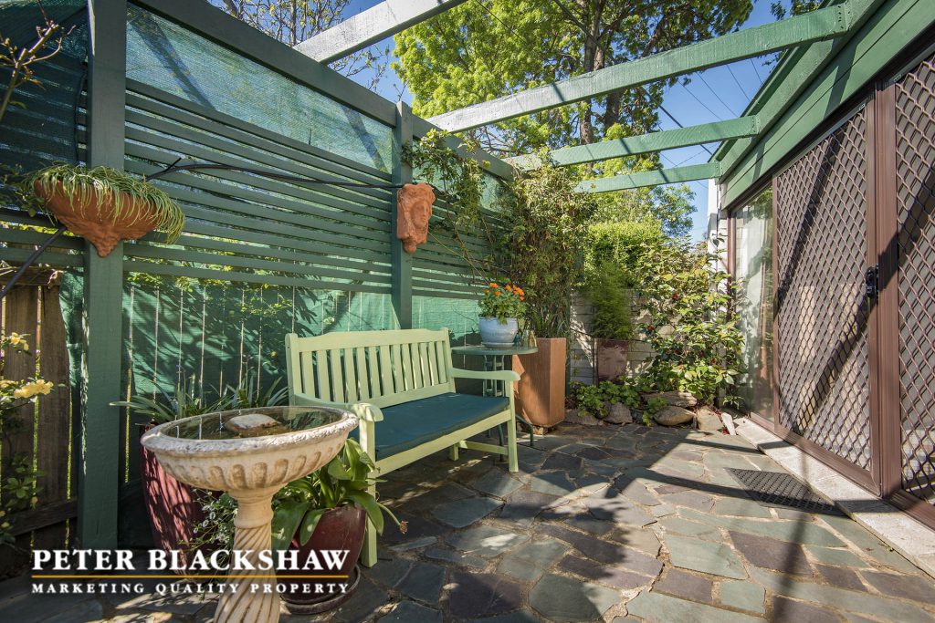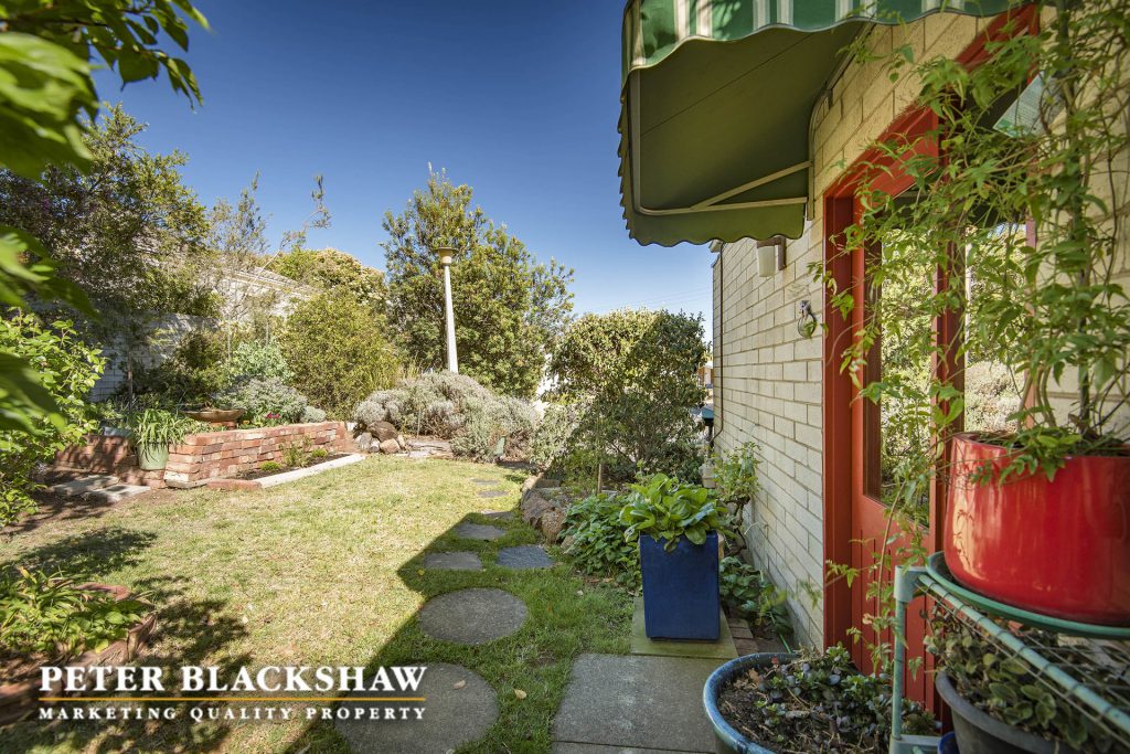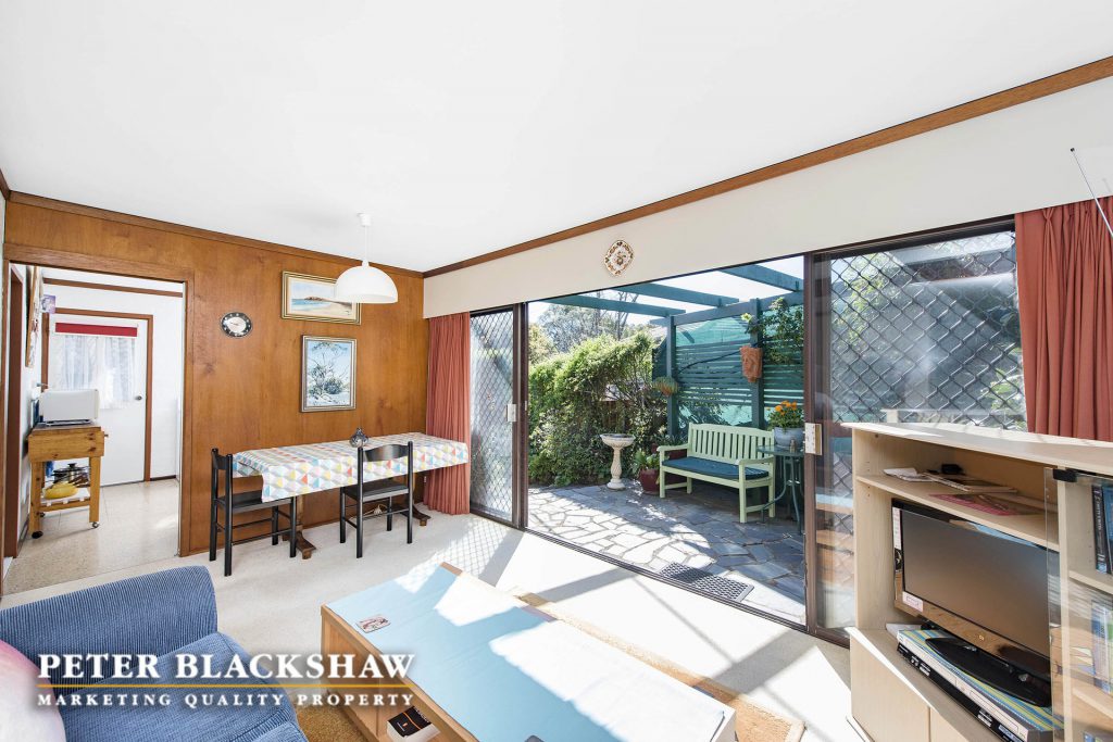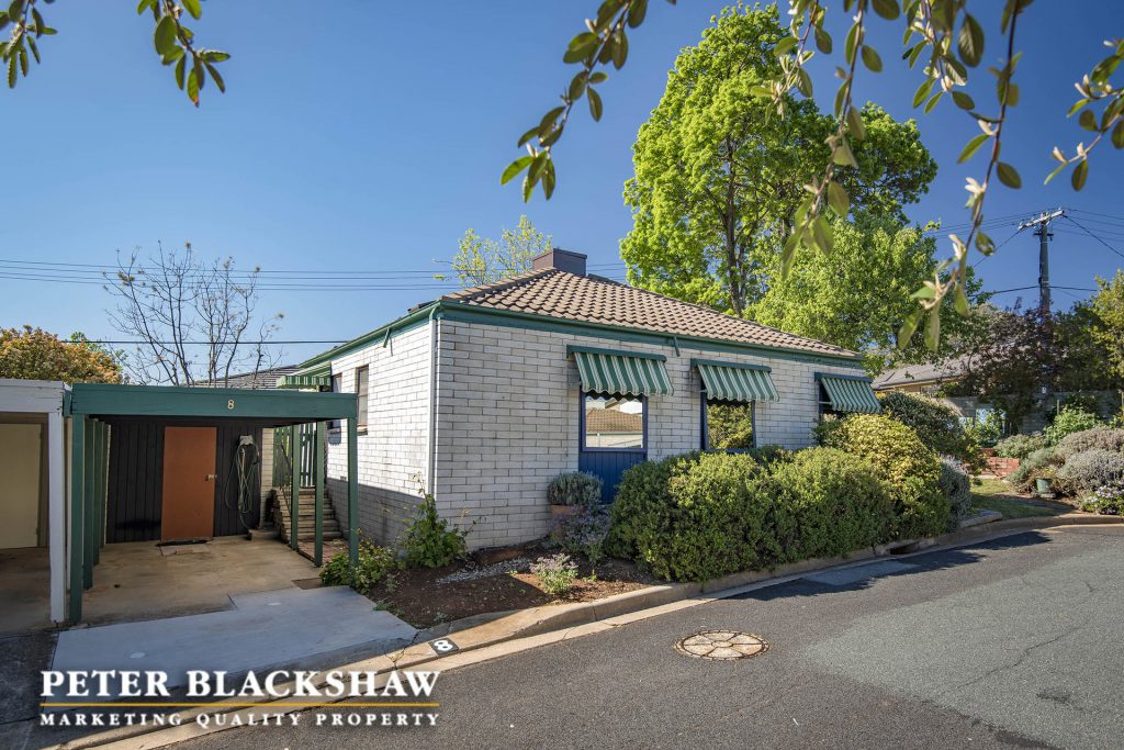 If you are over body corporate fees then this separate title townhouse alternative could be for you. Situated within the popular leafy suburb of Curtin and only a short stroll to the local shopping precinct, Woden town centre, playing fields and public transport, makes this property ideal for the investor, downsizer or first home buyer. Featuring a single level floor plan that consists of sun filled lounge / dining area with large adjoining kitchen that overlooks the rear gardens. The original entrance has been converted to a study nook which makes a great home office space. Accommodation is provided by two generous bedrooms which are supported by a fully renovated bathroom. Other features include a single carport, lock up storage area and large paved outdoor living area – all surrounded by private gardens. An outstanding opportunity to enter this sought after and tightly held suburb. Features Include: Separate title townhouse