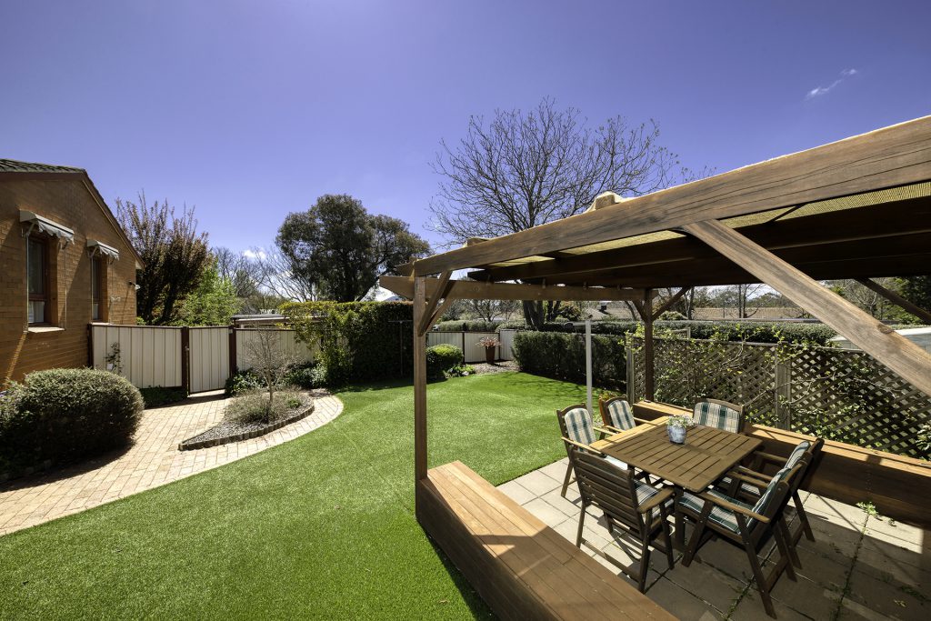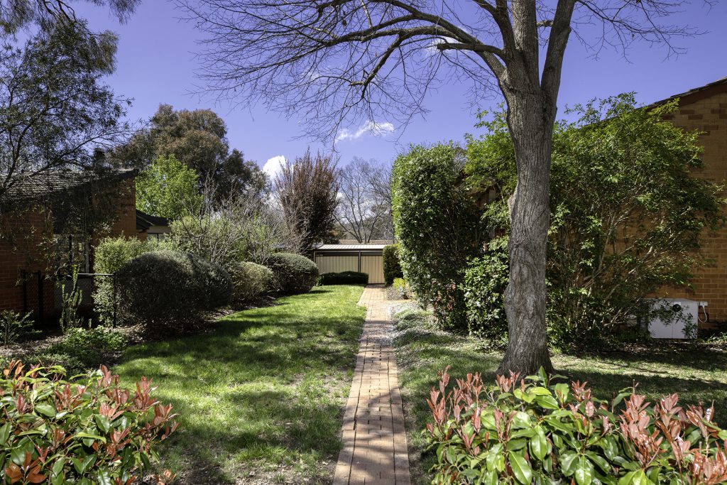 Hidden behind the mature trees is an outstanding opportunity to secure a restyled Radburn design home. The superb location within a quiet cul de sac and fronting the parkland only a short stroll to Holy Trinity and Curtin Primary Schools makes this single level design home a rare offering to the market.