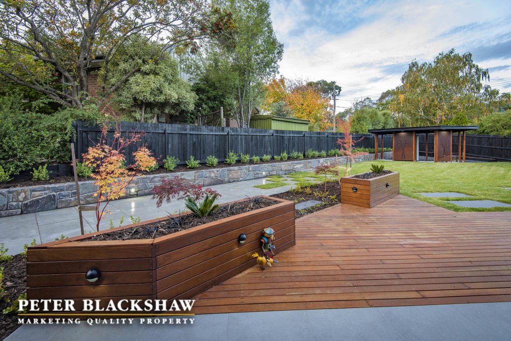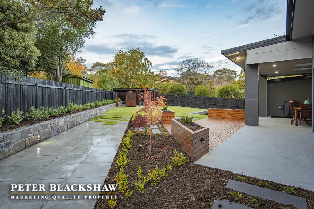 Professionally landscaped low maintenance garden with automatic irrigation and LED lighting