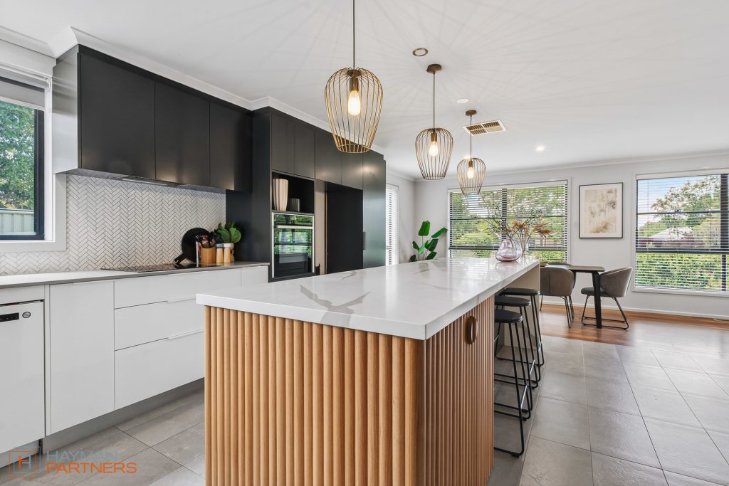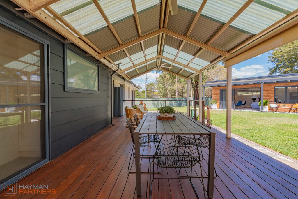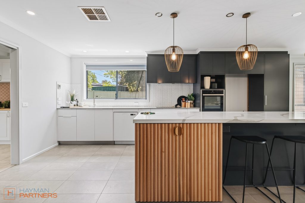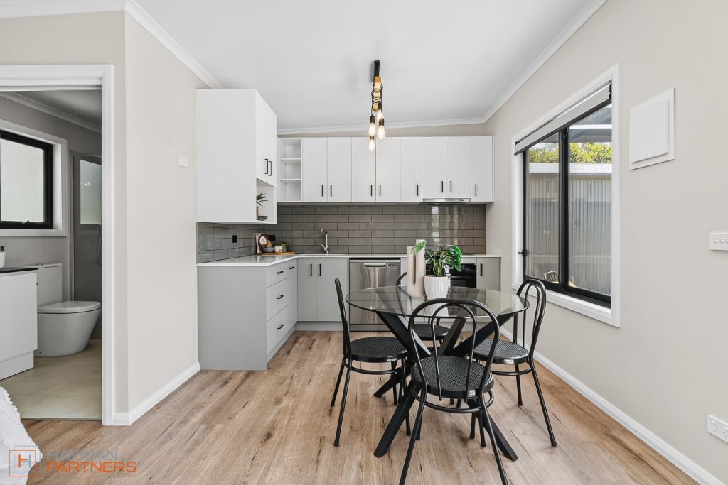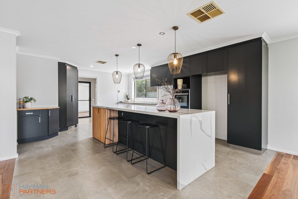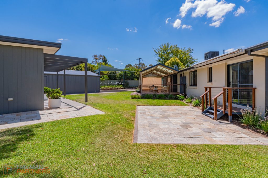 The main residence spans 188m2 and showcases thoughtful design and contemporary finishes throughout. At its heart is a stunning kitchen, fully renovated in 2021, featuring sleek modern appliances, extensive storage, and a full-length island bench that anchors the open-plan living and dining areas. The adjoining full laundry with integrated bar seamlessly services the covered outdoor entertaining zone-perfect for hosting family and friends year-round.