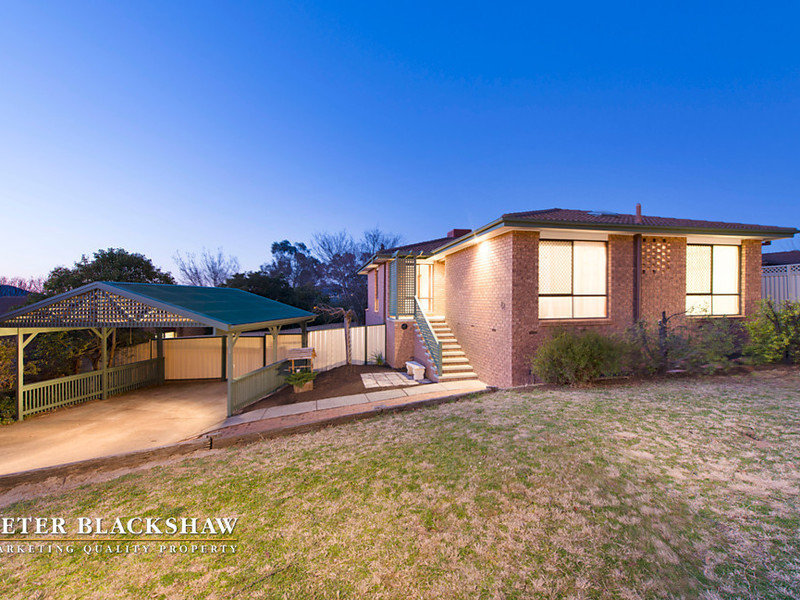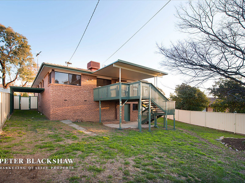Here is a fantastic opportunity to secure a great home within your budget. This elevated home includes a formal lounge and dining area with large windows to capture the light and views. A recently updated kitchen with the meals area flowing out to a large balcony providing views to the Brindabellas, Fadden Hills and Mt Taylor. Three bedrooms, all with robes, provides your accommodation. A large fully enclosed rear yard provides a safe space for a family to grow and enjoy the home for years to come. Other features include a double carport and plenty of storage area under the house. All of this is within walking distance of open green space, child care centres, schools and Calwell shops. Dont miss out on this fantastic opportunity!
