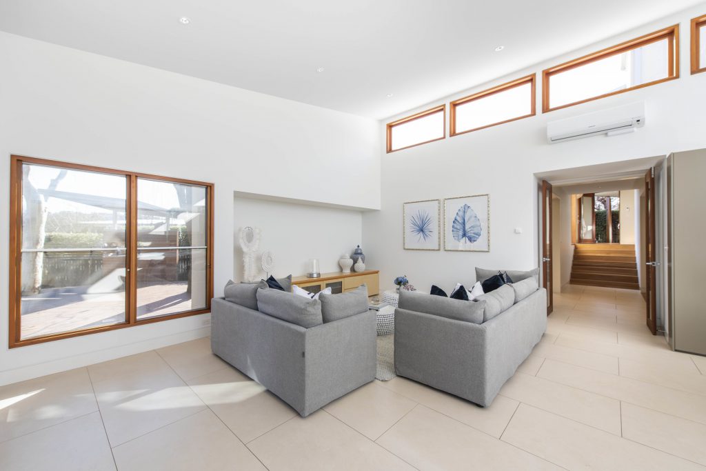 An unassuming facade, a beautiful treelined canopy of oaks and an expansive grand entertainers residence. 82 Jansz Crescent offers high specification finishes, impressive proportions throughout and lavish indoor-outdoor entertaining. Copious amounts of natural light flood the home year round, through the use of over 10ft high raked ceilings with highlight windows, floor to ceiling feature glasswork and an internal atrium. Formal and informal living spaces can be opened up for a light airy feel or segregated for private entertaining or break out spaces. The palatial sized master suite complete with walk in dressing room and private bathroom has been segregated on the ground floor from the remaining upstairs bedroom accommodation. An additional office/study with external access also could act as a 5th bedroom. A rare offering with over 370m2 of living space, freshly painted inside and out, with an impressive list of options and built to the highest standard for the concerning buyer, all with in an exclusive location walking distance to Manuka Village.