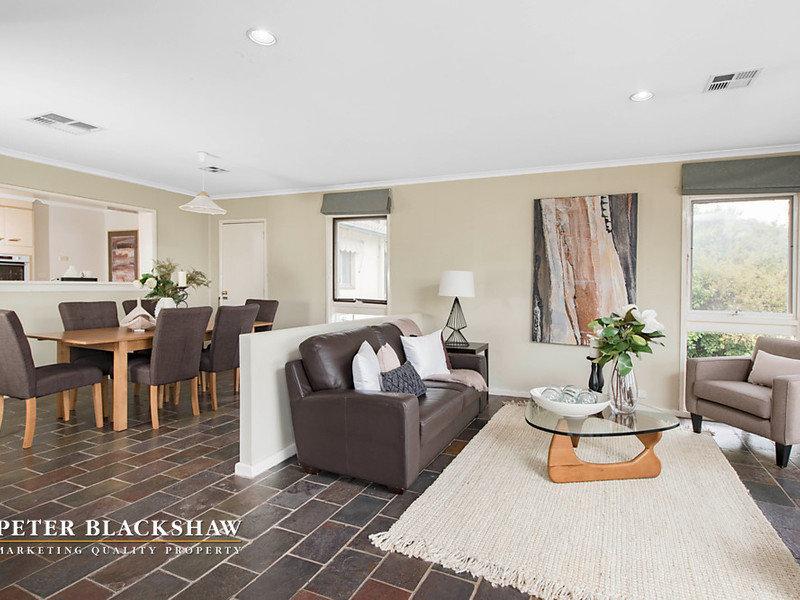 Looking out to the Brindabellas from the rear deck is one of the pleasures of living in this sun filled two storey family home. Well presented throughout and offering a number of internal and external living areas to suit all seasons. The accommodation is provided by four bedrooms all with built in robes and master with ensuite. Large timber windows are a feature throughout the formal and informal living areas and offer a fantastic outlook across the Brindabellas. The large, original yet functional kitchen connects seamlessly to the meals / family area. The downstairs rumpus room opens to the rear outdoor entertaining area, offering further options to relax or entertain family and friends. Mature established landscaped gardens, oversize double garage and ample off street parking complete this outstanding home. Stroll to local schools, Cooleman Court, Fetherston Gardens, public transport and within minutes to Woden and Canberra City – a very central and sought after location.
