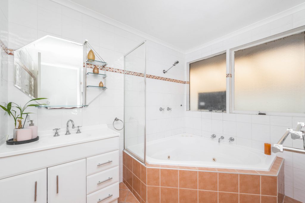 The master bedroom boasts walk-in robe and ensuite, whilst the additional spacious bedrooms are serviced by a main bathroom with spa bath.