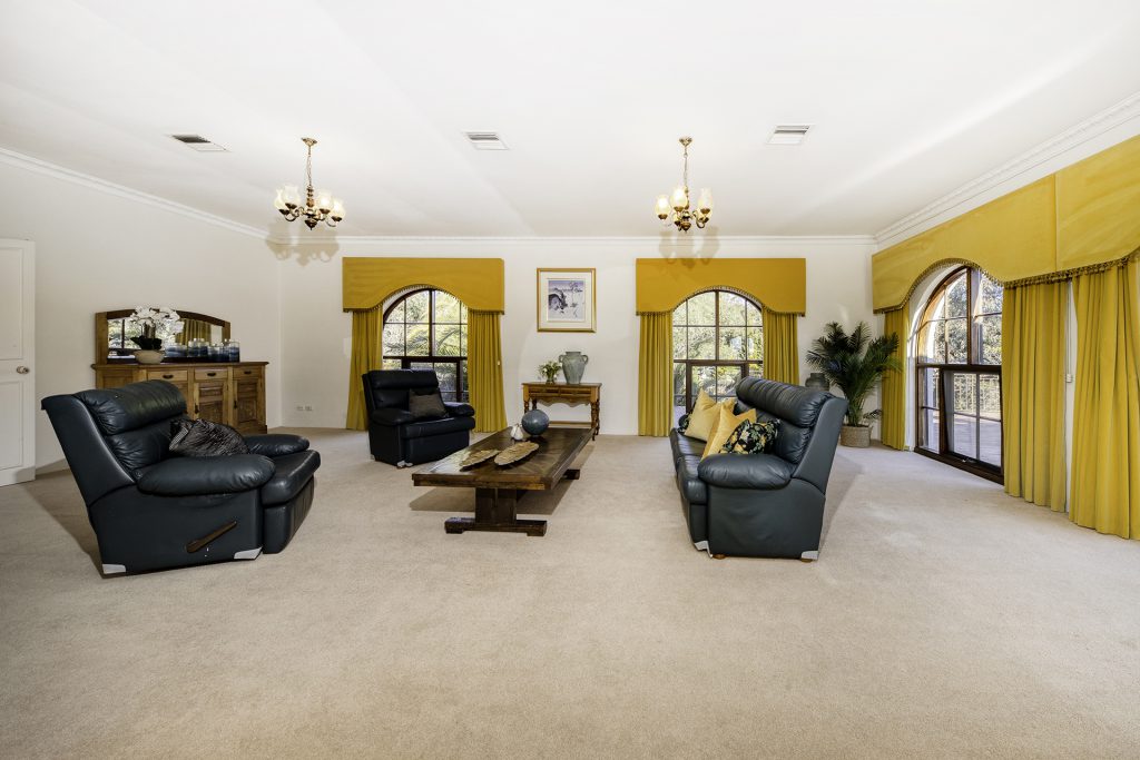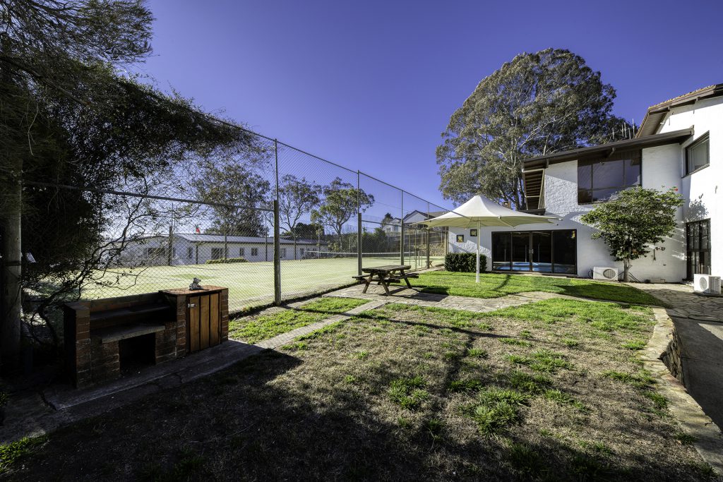 The well-equipped open plan kitchen connects to the family room and elevated outdoor entertaining decks which overlook the full-size tennis court and rear gardens offering stunning views of the Brindabella Mountains. An additional rumpus /gym/ games room with bathroom is located downstairs.