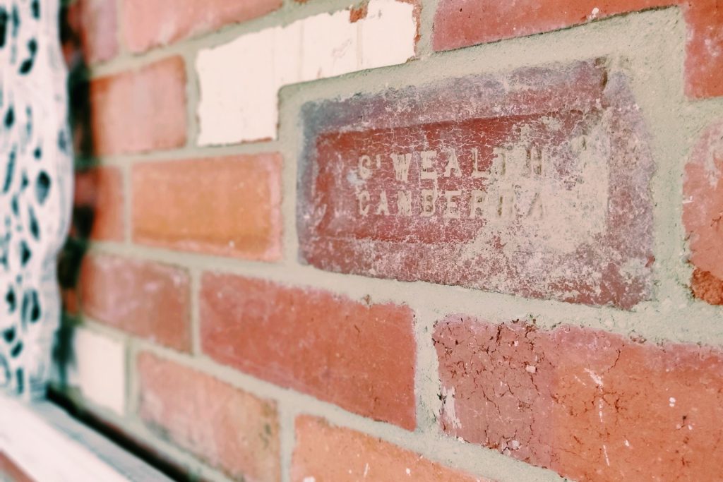 ‘Canberra Red’ brick feature wall with historic ‘C’Wealth Canberra’ and ‘C.B’ bricks