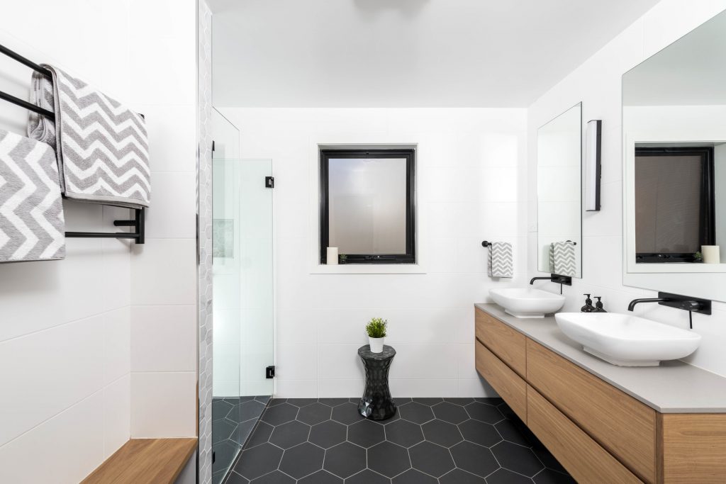 Accommodation is provided by four bedrooms all with built in robes and the main bedroom with walk-in robe and ensuite. Adjoining the bedrooms is a rumpus or study area. Both the bathroom and ensuite offer a funky modern aesthetic.