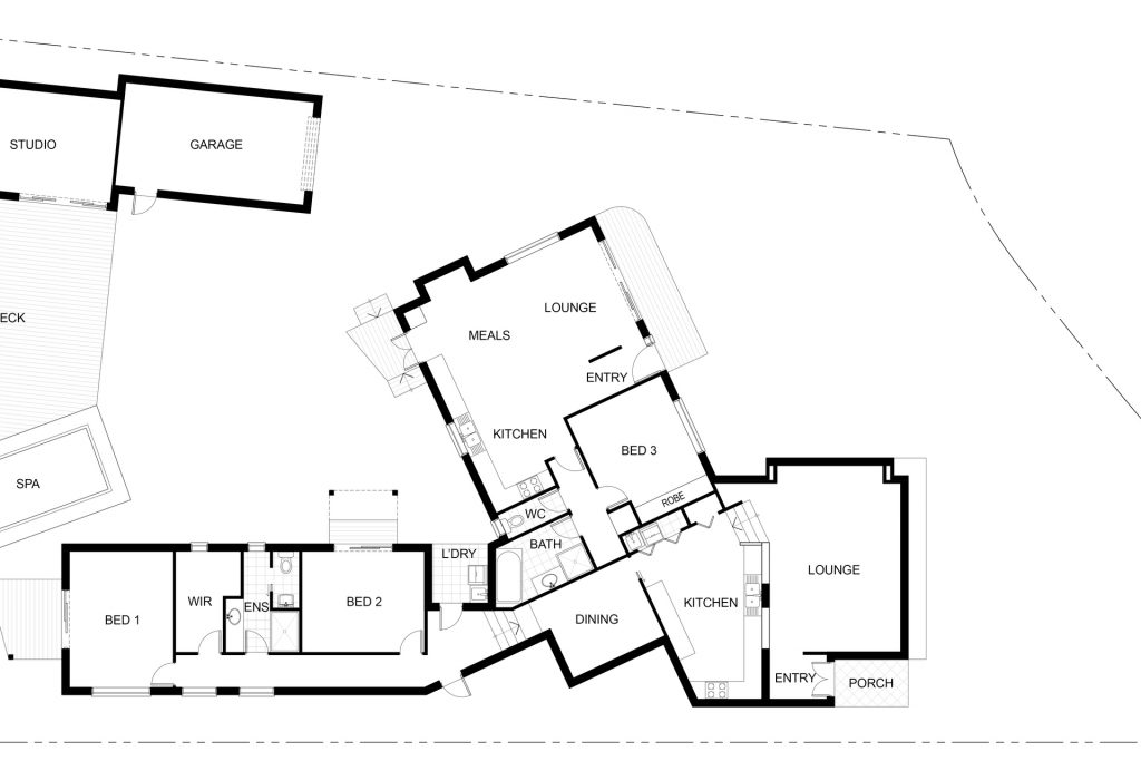 The left side of the home features a stunning architectural split level design which includes a beautiful North facing open plan living area with polished concrete floors, built in joinery and large double glazed windows. Overlooking the living area is the spacious modern kitchen with stone bench tops which connects directly to the meals / dining area. Accommodation includes two over size bedrooms, the master with walk in robe and modern bespoke bathroom.