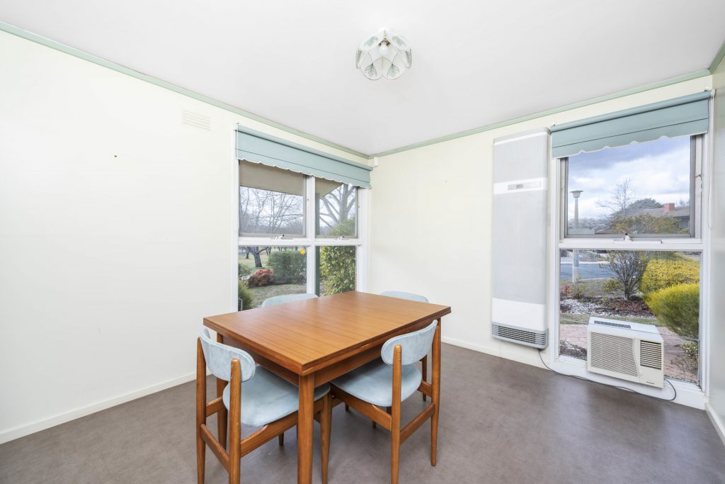 Accommodation is provided by three bedrooms, all with built-in wardrobes, and all three are serviced by a original bathroom with separate toilet. Other features include gas heating and two electric heaters, alarm, easy care gardens and single carport with two sheds. A short stroll to local shops, schools without crossing a road, parkland and within minutes to Woden and Civic. An outstanding opportunity awaits. Potential Aplenty.