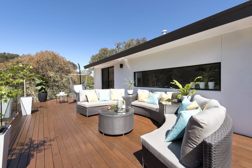Superb north /east facing entertaining Merbau deck with glass balustrade – over 50 sqm