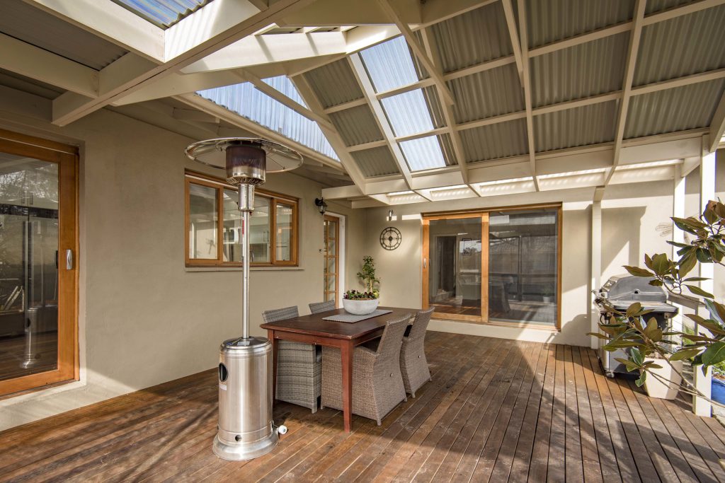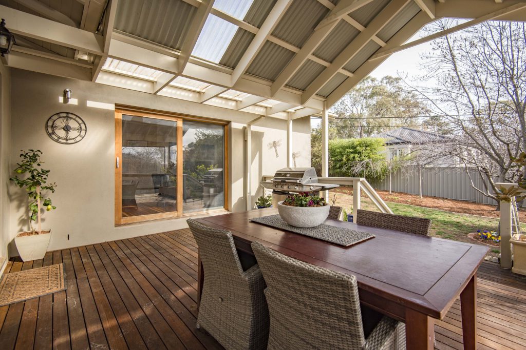 30m2 merbu deck with timber pergola overlooking rear yard,perfect for outdoor entertainment.