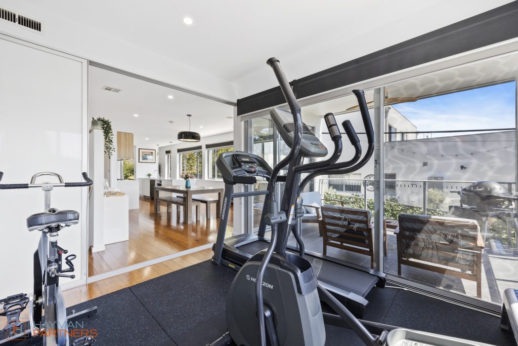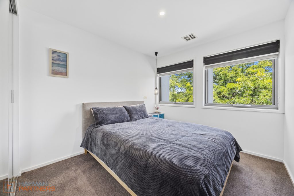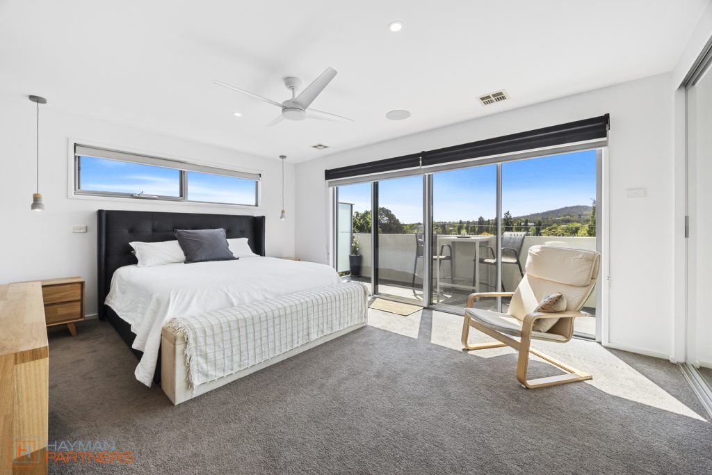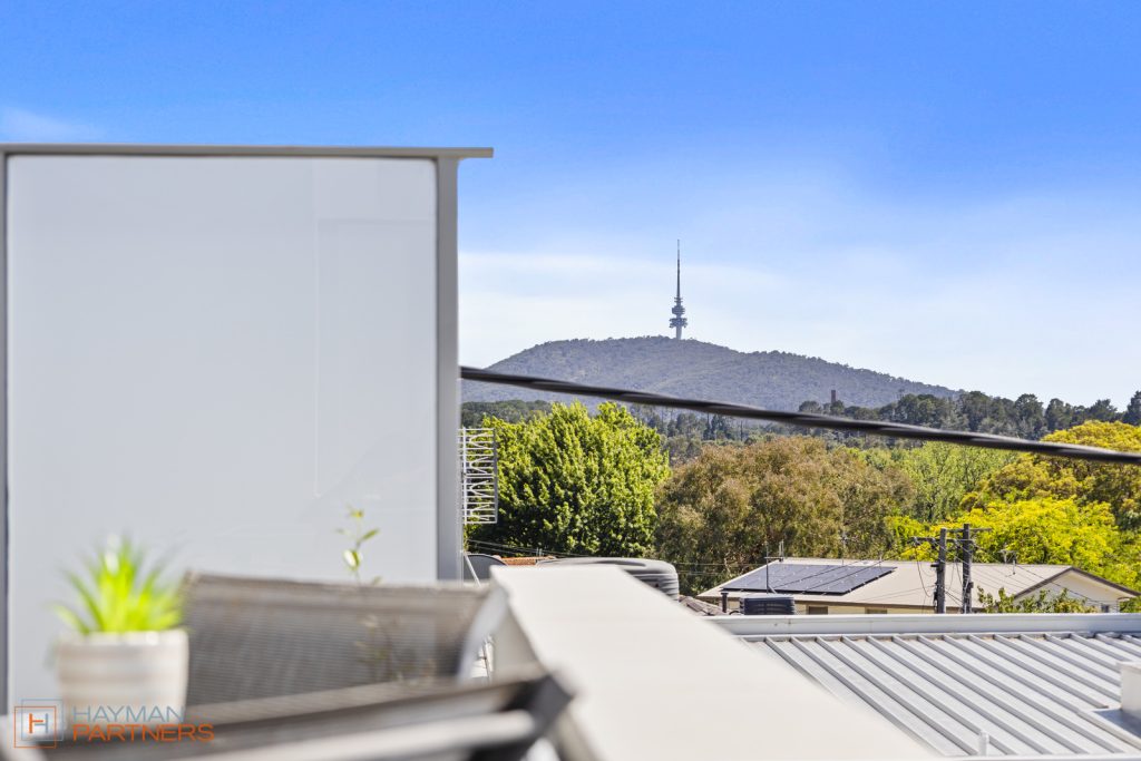 Upstairs, the master suite impresses with an ensuite, a wall-length built-in robe, and a private balcony showcasing stunning views of the Mint Building, Parliament House, and Black Mountain Tower. Two additional bedrooms with built-in robes are serviced by a modern family bathroom, in addition to an additional powder room downstairs. The lower level features a large garage with storage area, and a 2,000L water tank, with additional off-street parking for up to four cars. Luxury finishes like bamboo flooring and advanced technologies make this home a standout in comfort and convenience.