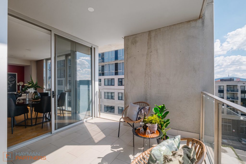 Large balcony terrace overlooking green space and gardens
