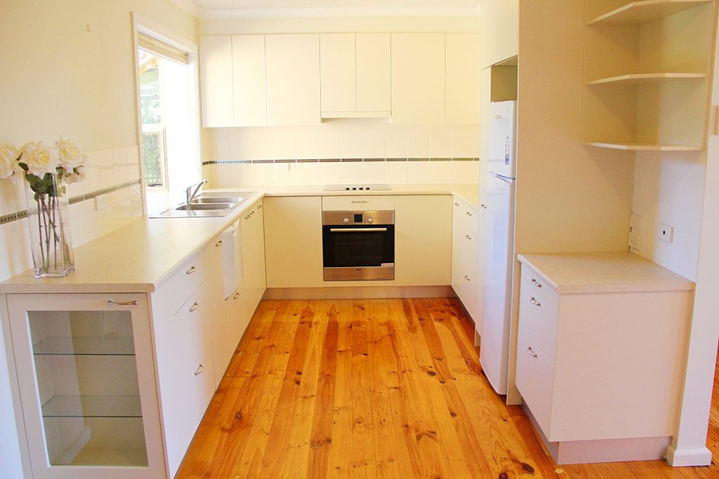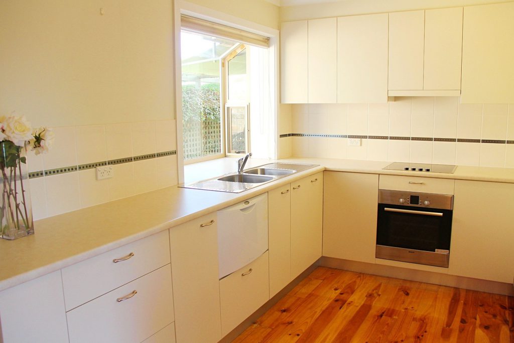 Large modern kitchen with loads of bench space, induction cooktop, electric oven, dishwasher drawer & plenty of cupboard space.