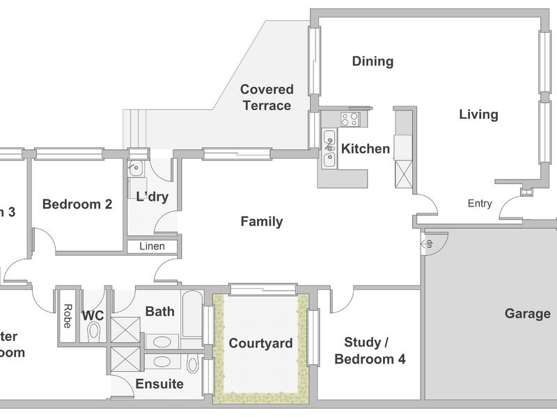 Suitable for a couple or small family, with sun-drenched living areas including generously proportioned lounge and dining areas, open plan kitchen with adjoining meals area and large family room. Accommodation includes three bedrooms plus study/ fourth bedroom, the master bedroom with a good size functional ensuite. The covered outdoor entertaining area has a pleasant outlook over the easy care landscaped gardens.